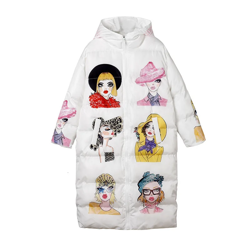 QING MO 11.11 Sale Pink Panther Women Parkas 2020 Winter Women Hooded