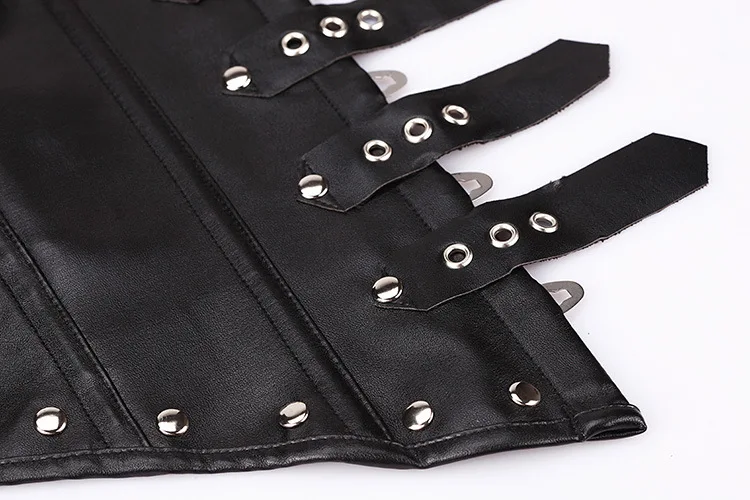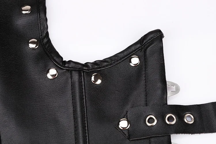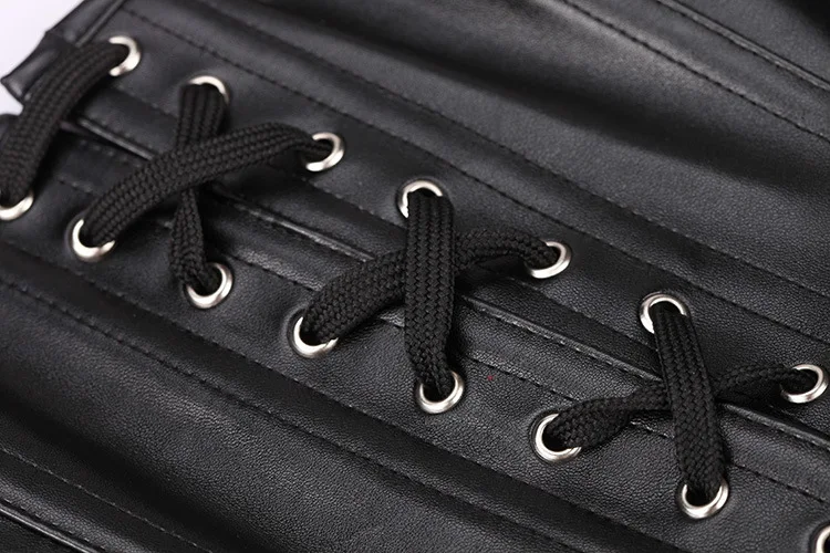 Black Red Bustier Zipper PU Leather Corset Bustier Dress Set Overbust Sexy Lingerie Women Lace Up Corselet Tops Skirt Thong