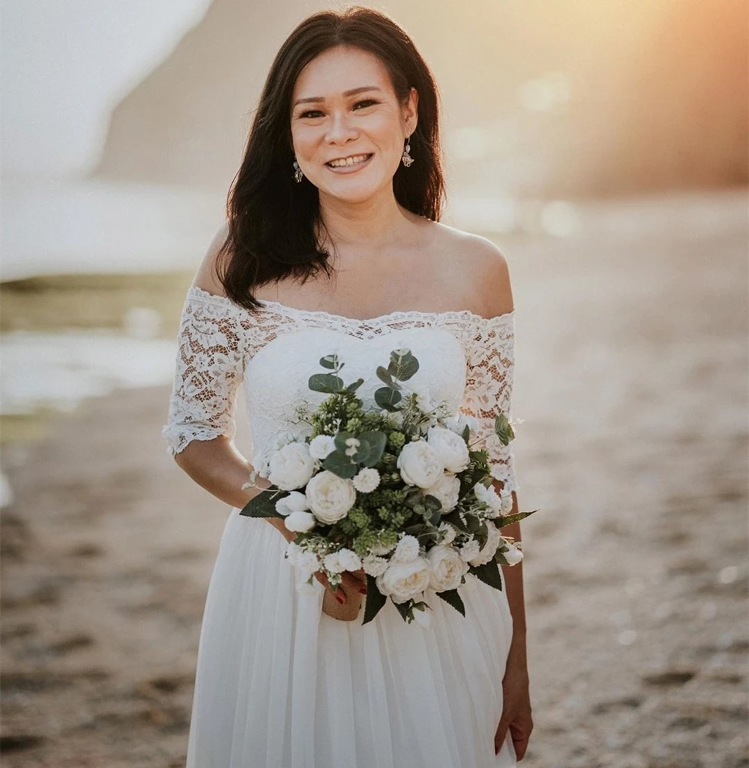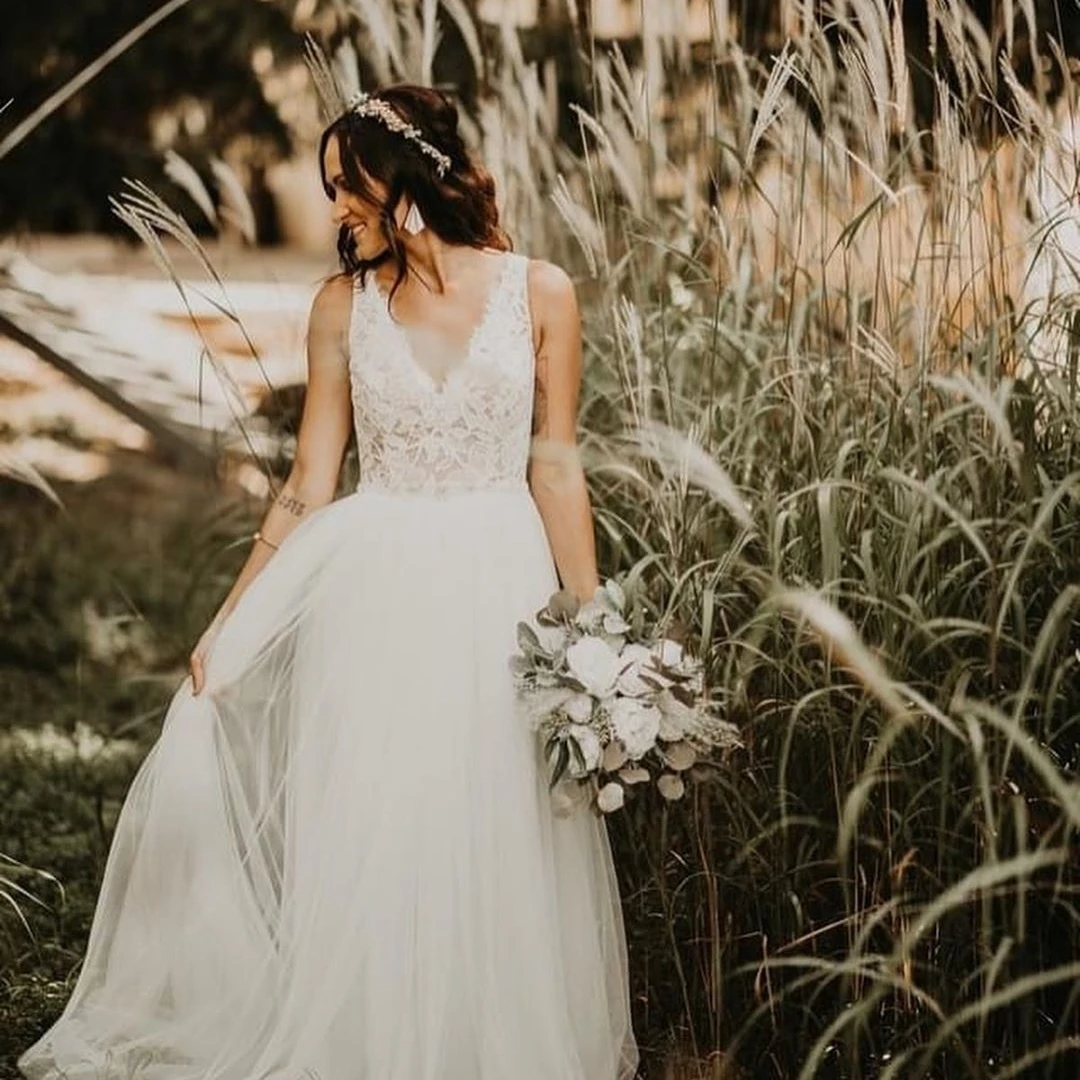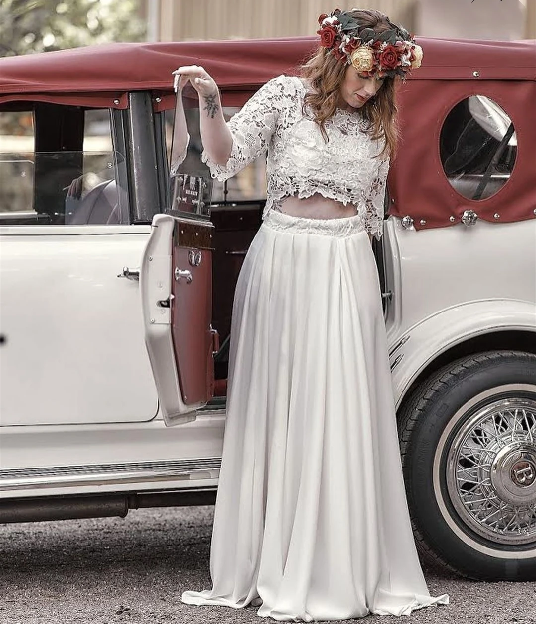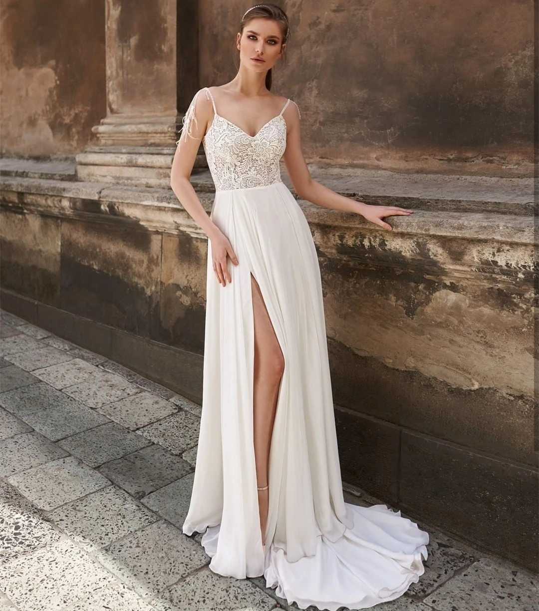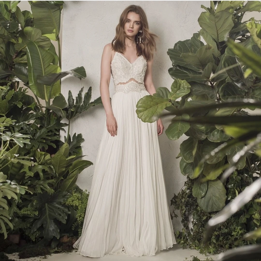 Bohemian Wedding Dress 2021 Long Sleeve V-Neck Floor Length Chiffon A-Line lace Back Bridal Gowns With Belt Charming For Women