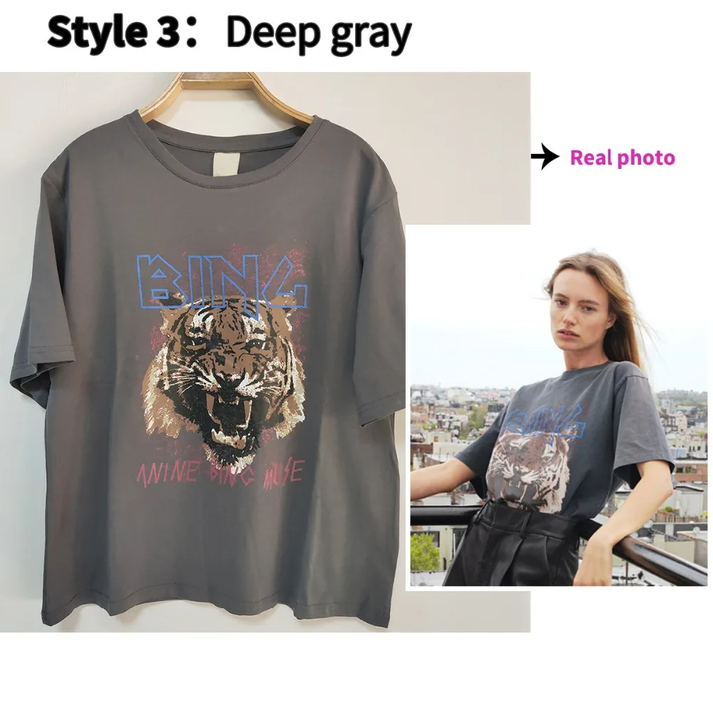 Boho Black Tiger Head Graphic Tees Women Cotton Short Sleeve O Neck Tshirt Shirts New Fashion Women T-shirt Casual T-shirts