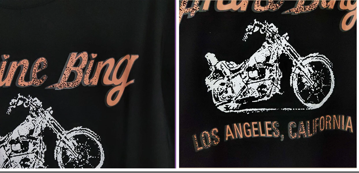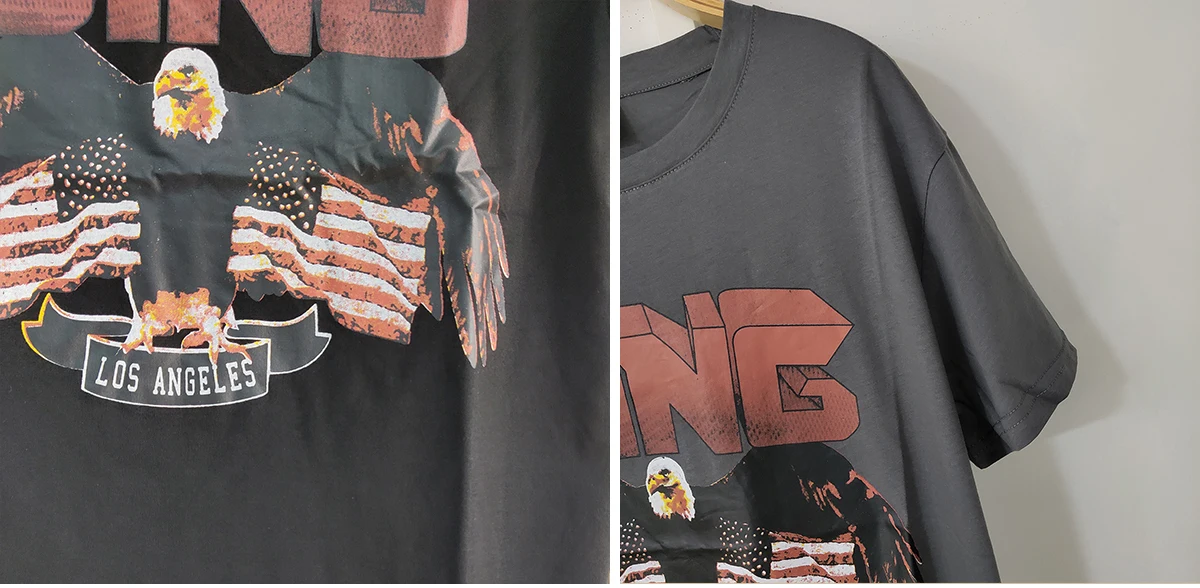 The pattern on the T-shirt uses a special printing method, showing a worn and cracked look. This is to make the clothes more vintage, this is not a product quality problem and it is not easy to fall, please do not worry