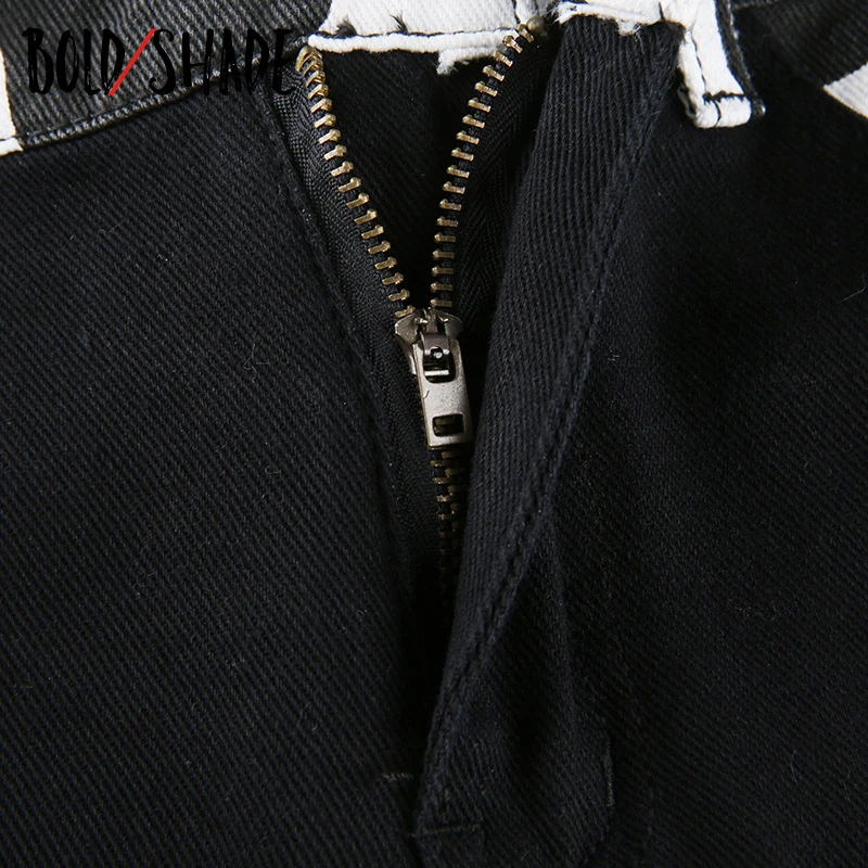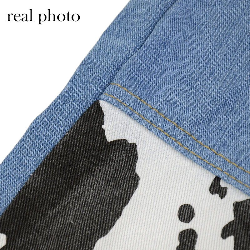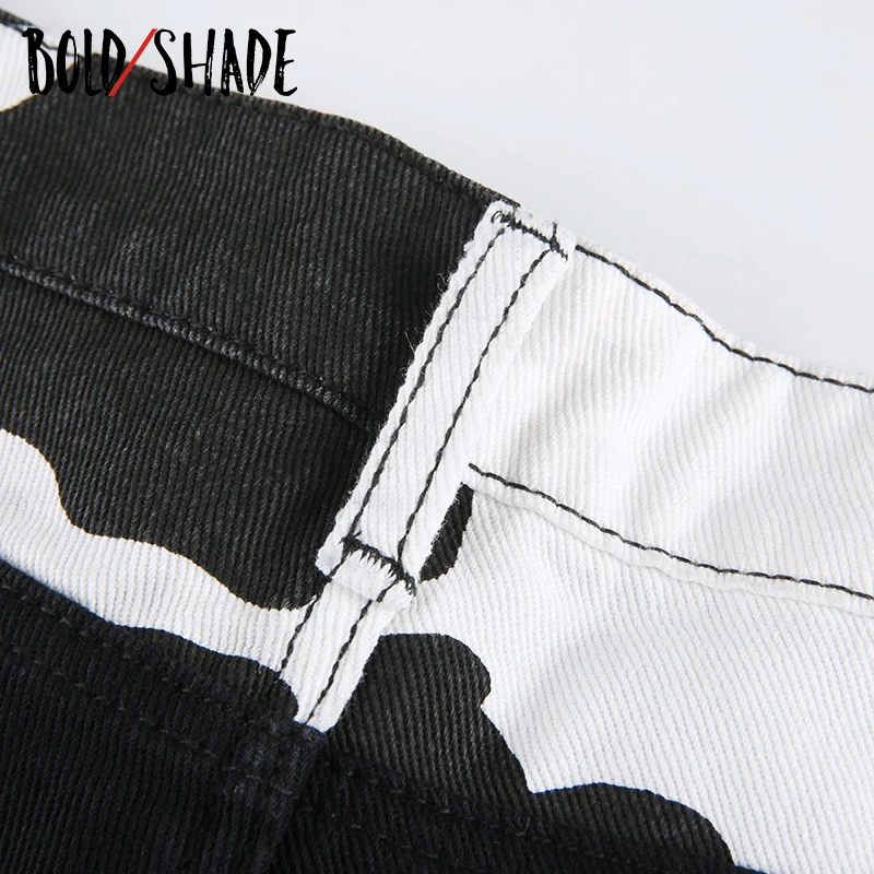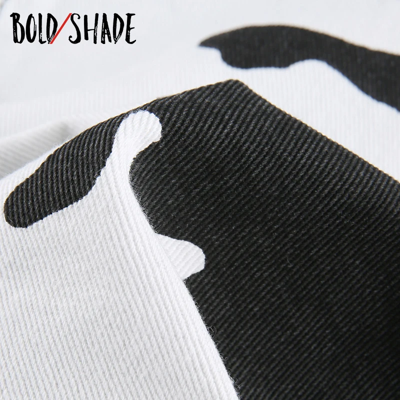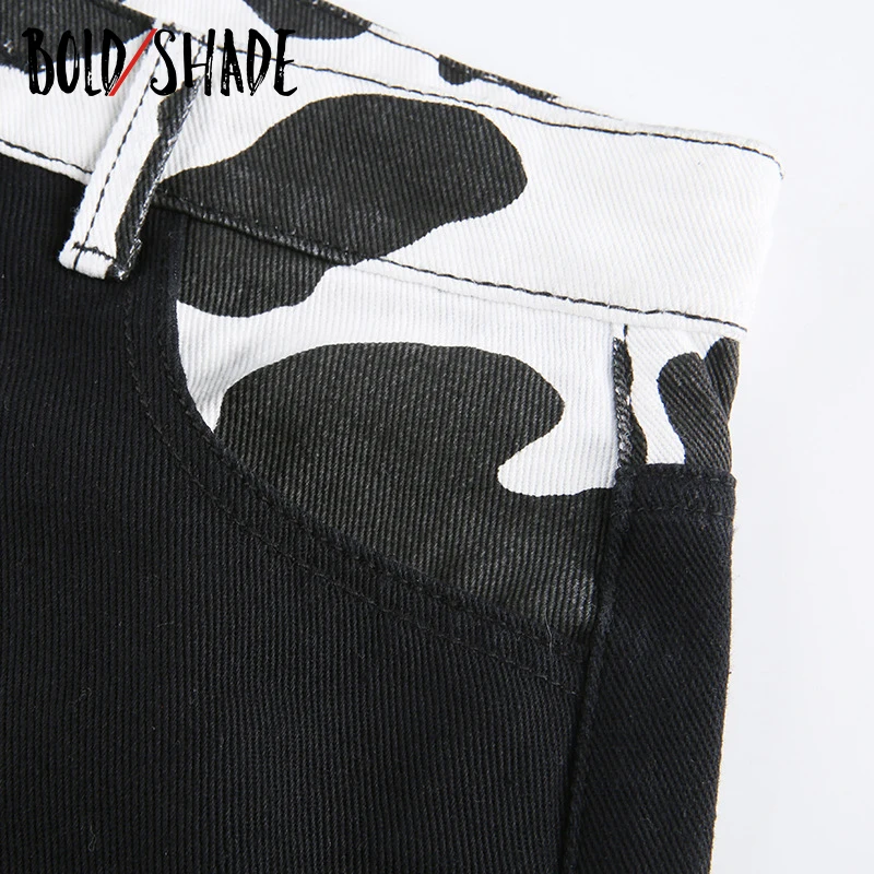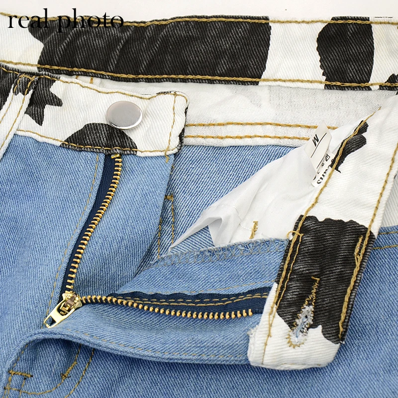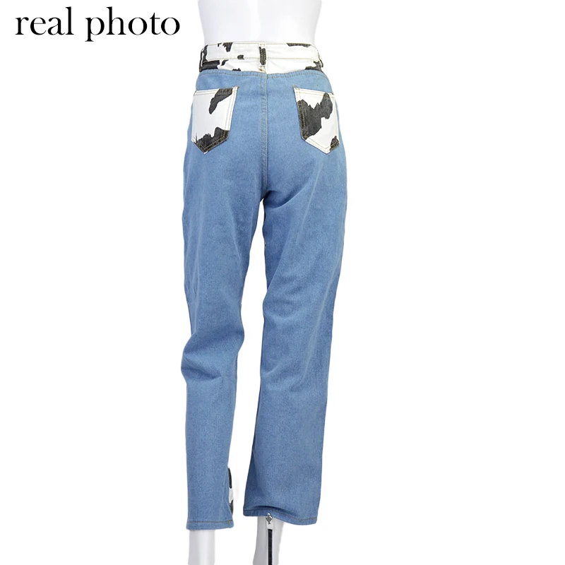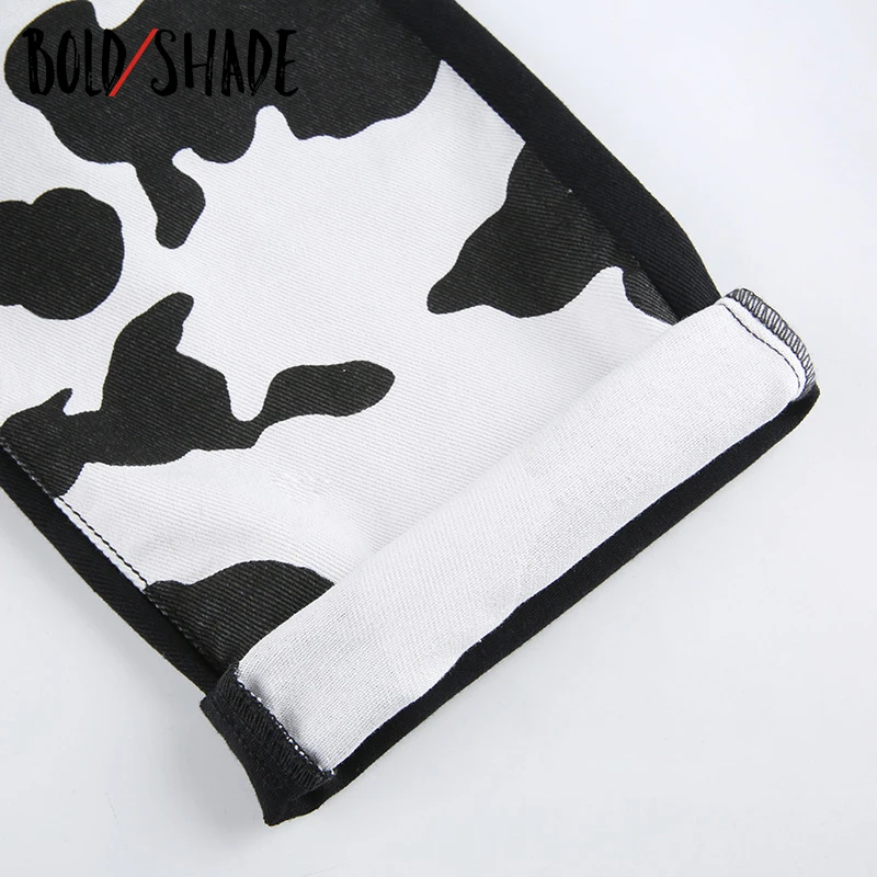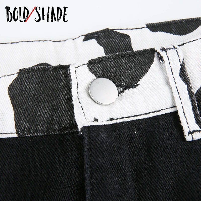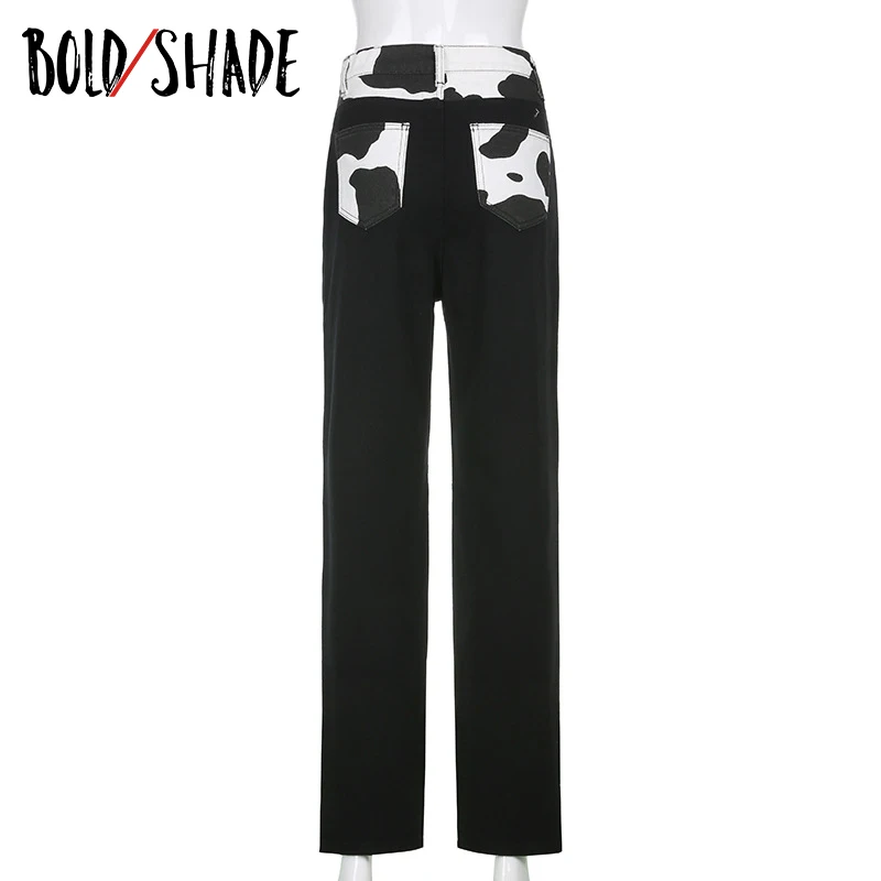 Bold Shade Indie Skater Style 90s Denim Jeans Y2k Grunge Fashion Milk Cow Print Patchwork Jeans Streetwear Pants Women Fall 2020
