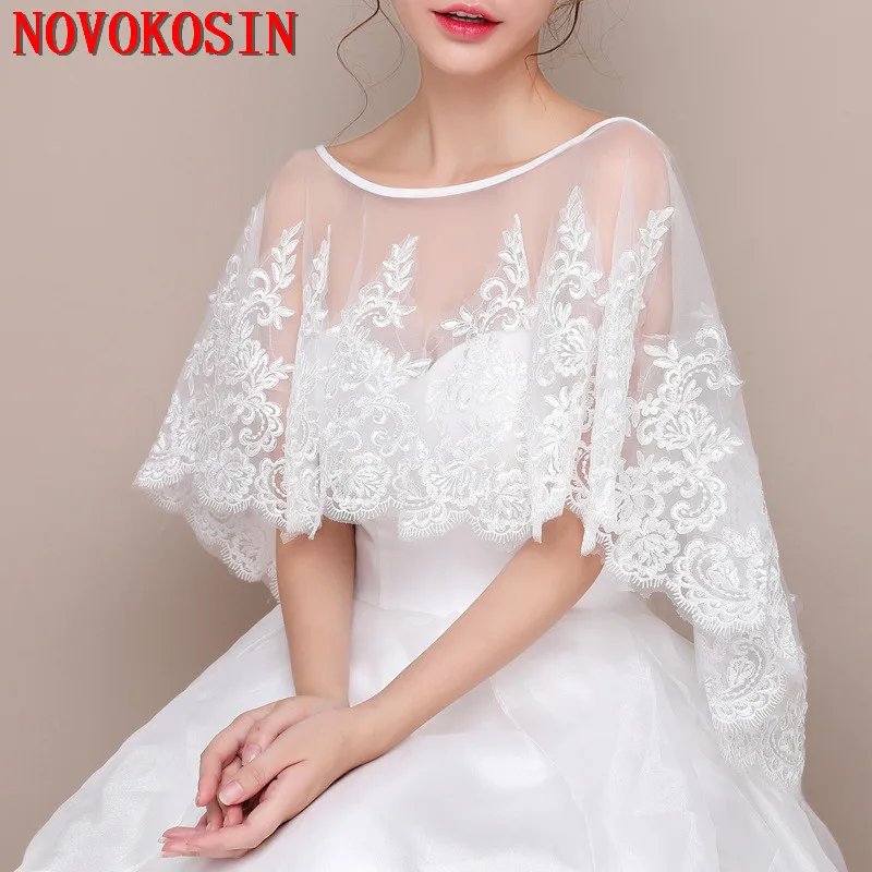 Bolero for Prom Beach Wedding Bridal Dresses Shawl Sleeves Bridal Wraps Lace Applique Beading Bridal Evening Jacket 2020