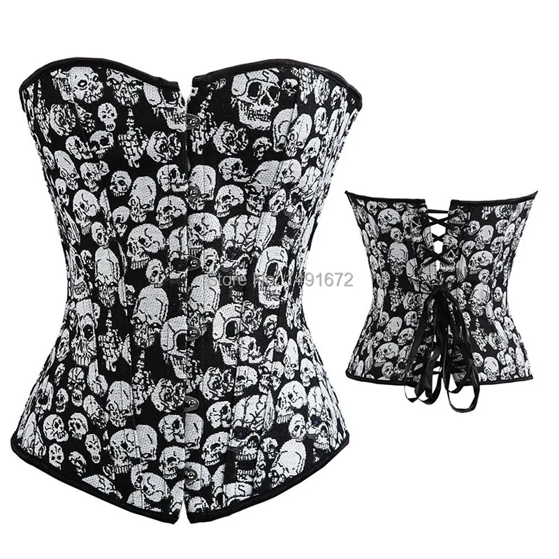 skull bustiers & corsets lingerie plus size burlesque costumes fashion vintage style Sexy corset overbust plus size black 6XL