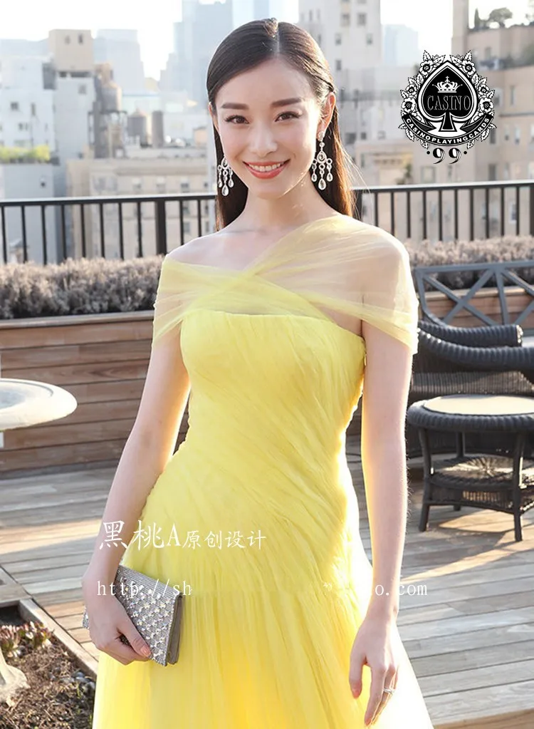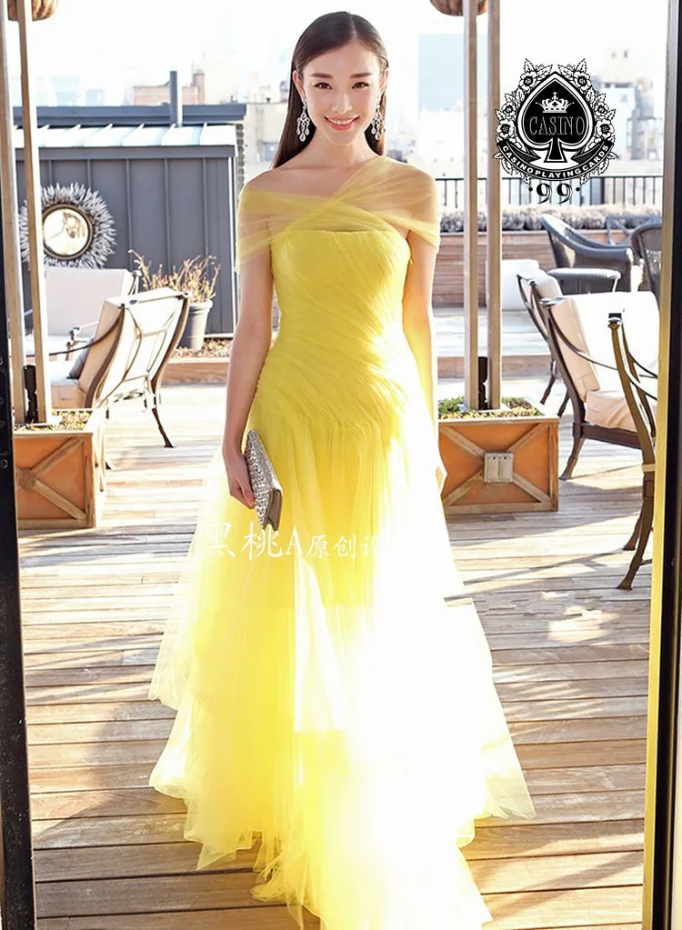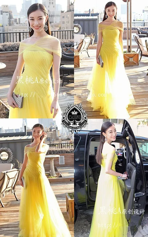 cap sleeve yellow tulle long a-line 2020 new платья знаменитостей prom gown Formal vestido de festa longo Celebrity Dresses