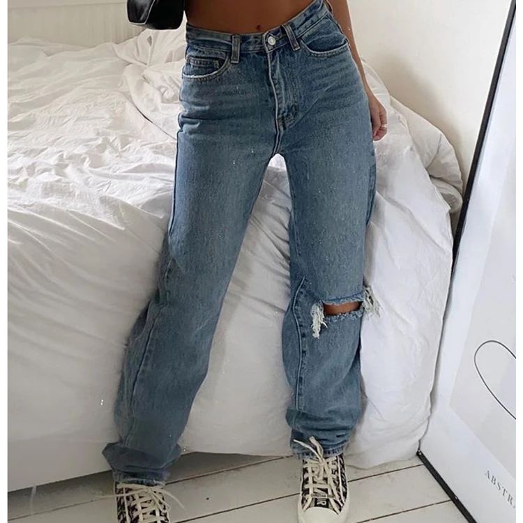 Cargo Pants Women Ripped Jeans For Women Mom Jean High Waist Jeans Holes Thin Women’s Baggy Fashion Jeans Long Denim Trousers