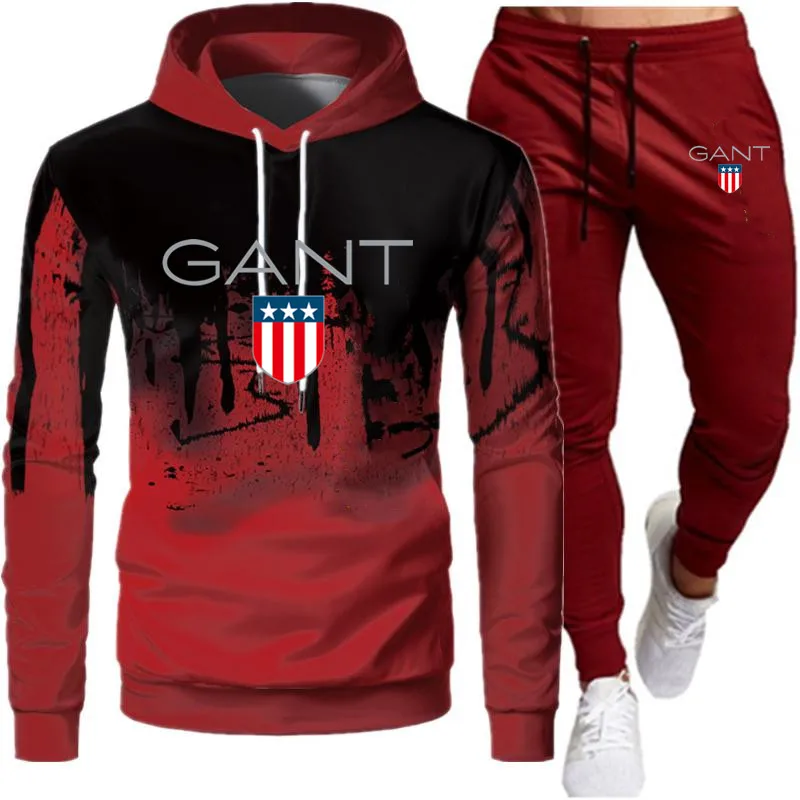 Casual Tracksuit Men 2 Pieces Sets Hooded Sweatshirts Spring Men’s Clothes Pullover Hoodies Pants Suit Ropa Hombre Plus Size