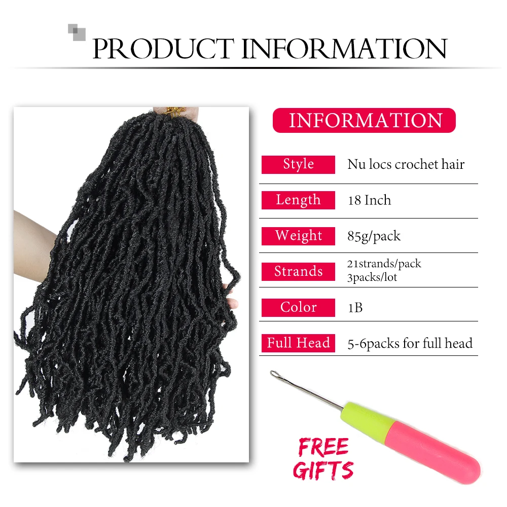 Cheris hair Nu Locs Crochet Hair Natural Curly Dreadlocks Hair Black Dark Brown Faux Locs Crochet Braids 18″ 21Strands/Pack