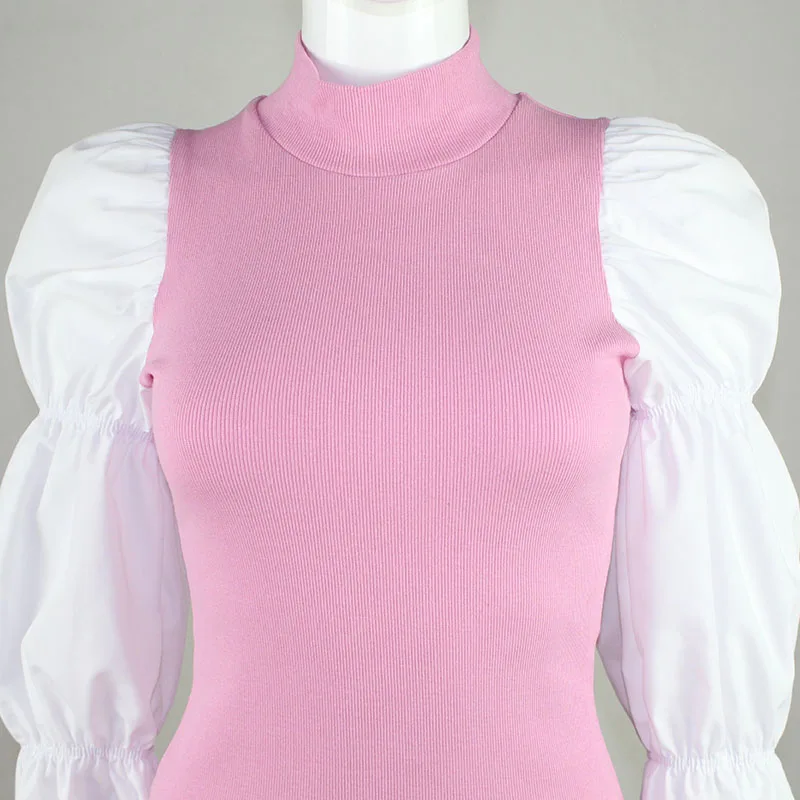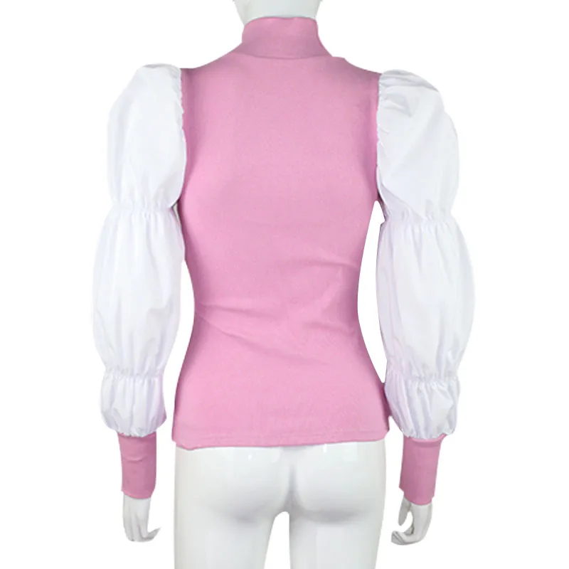 CNYISHE Puff Sleeve Women Shirts 2019 Winter Fashion Streetwear Women Tshirt Tops Ladies Regular Casual Patchwork Slim Fit Shirt