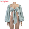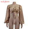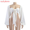 Cryptographic Sexy Backless Fashion Square Collar Wrap Women Shirts Batwing Sleeve Solid Crop Tops Women Tops and Blouses 2020
