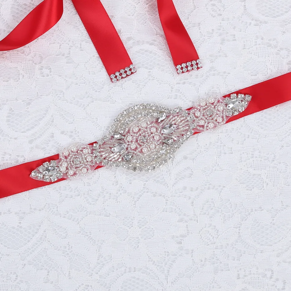 Crystal Wedding Accessories Pearls Wedding Dress Belt Ribbon Waistband Sash Bridal Belt for Evening Prom Dresses 2020