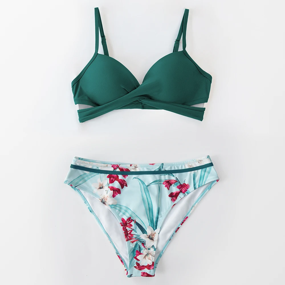 CUPSHE Push Up Floral Wrap Bikini Sets Women Sexy Thong Two Pieces Swimsuits 2021 New Girl Beach Bathing Suits Swimwear