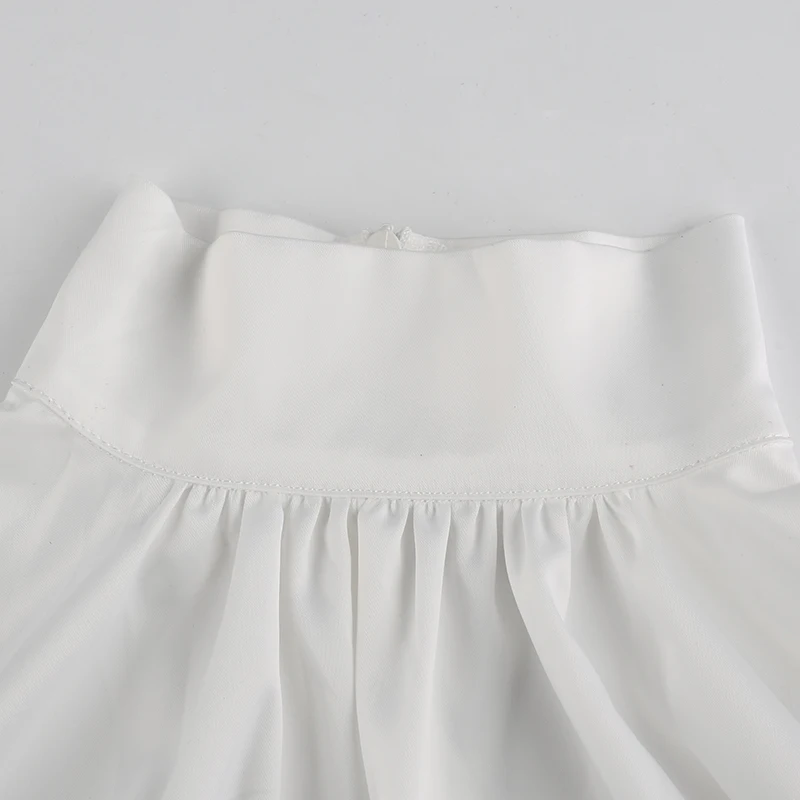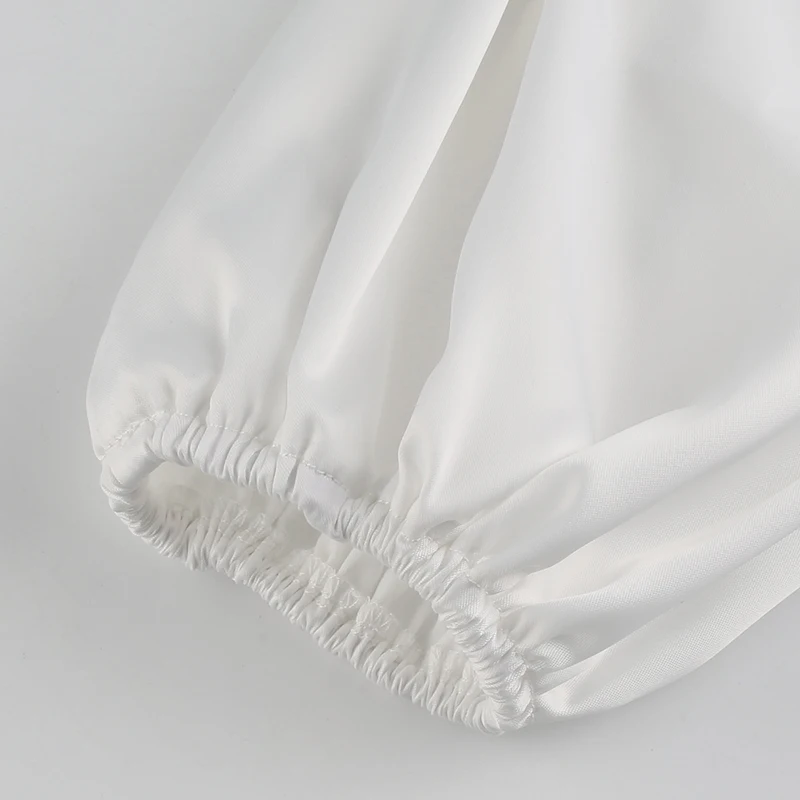 Darlingaga Fashion Chic Satin High Neck Blouse Shirt Women Long Puff Sleeve Ladies Tops Elastic Waist Soft Shirts Crop Top 2020
