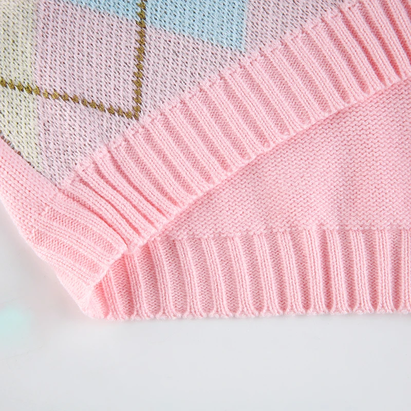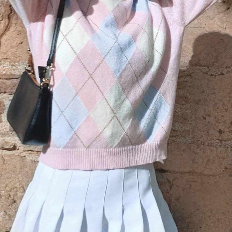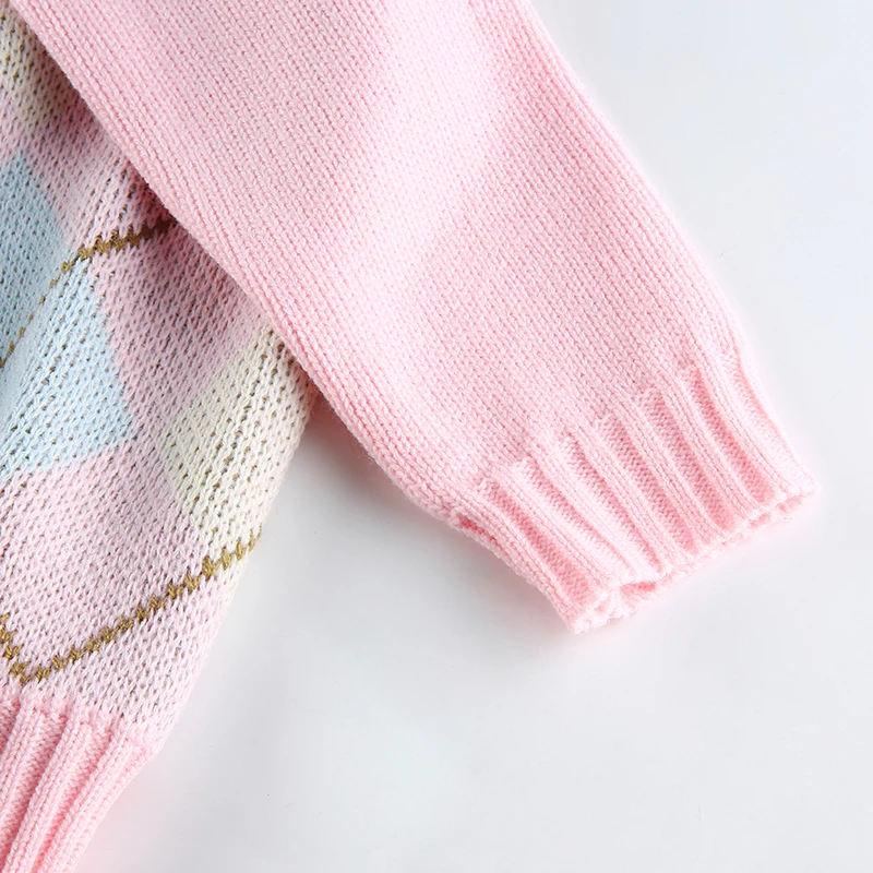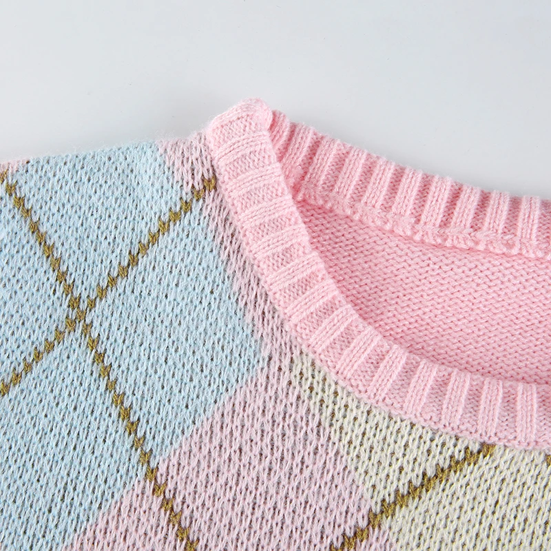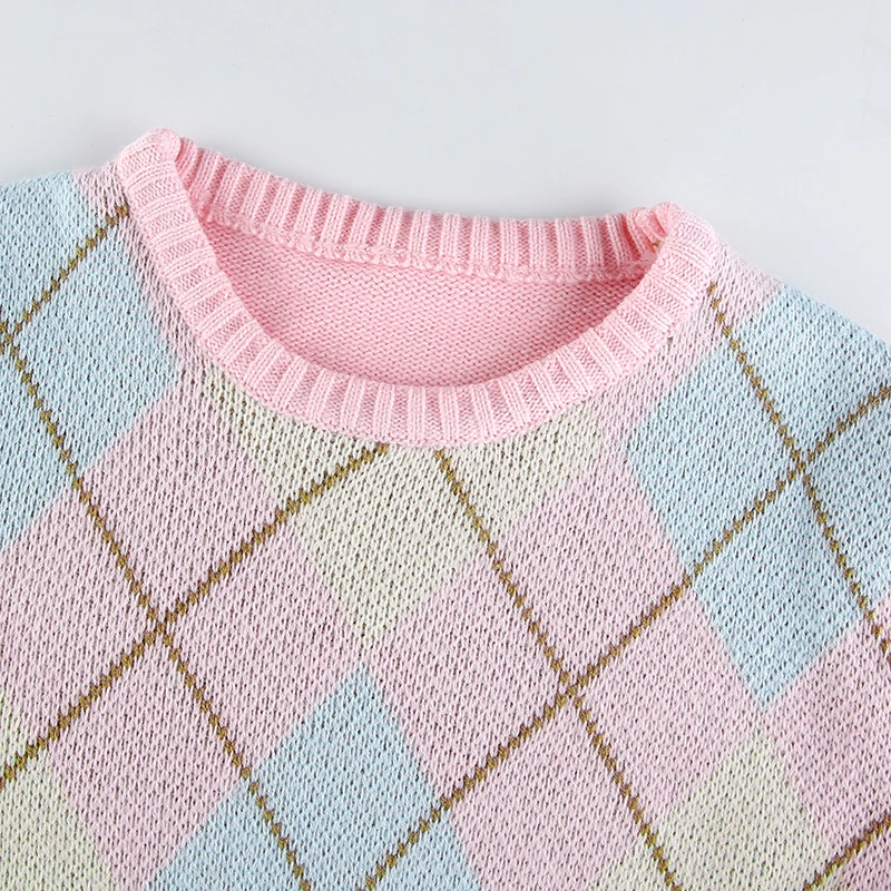 Darlingaga Fashion Vintage Pink Argyle Plaid y2k Woman Sweaters Long Sleeve Autumn Pullover Preppy Style Girls Knitwear Sweater