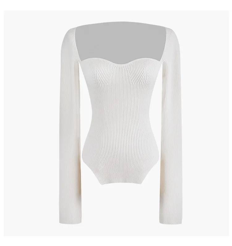 DEAT 2020 new spring sexy stylish sqaure collar full sleeves knitting pullover sexy slim T-shirt female top WK08001L