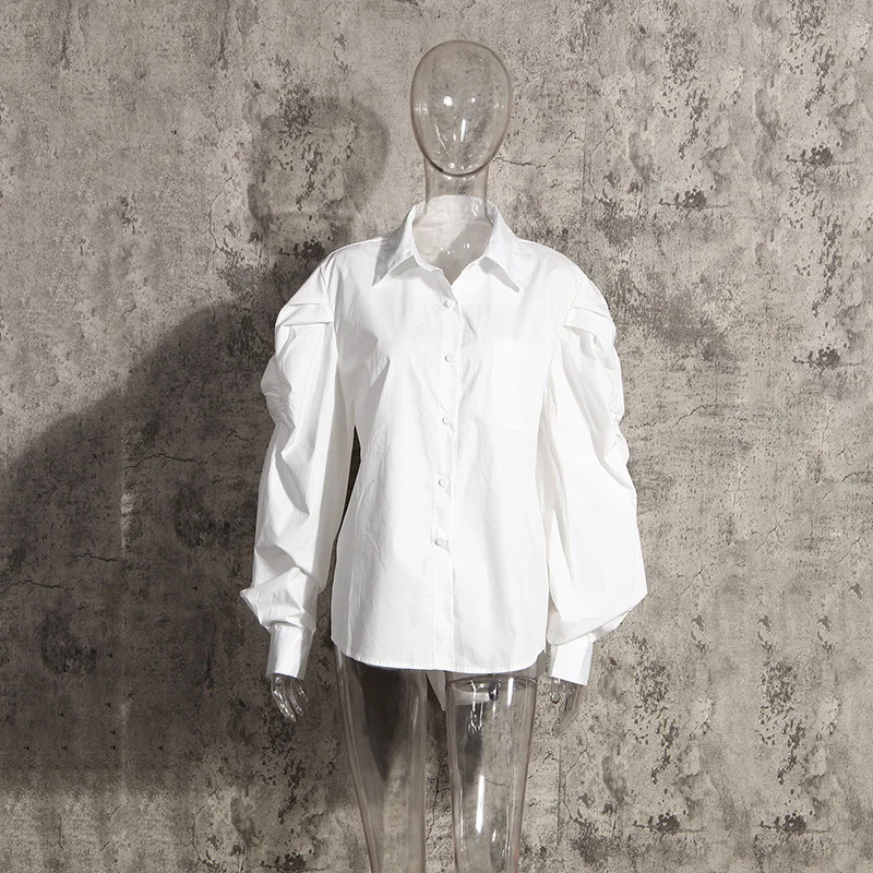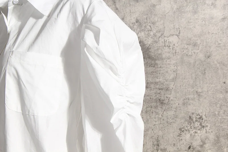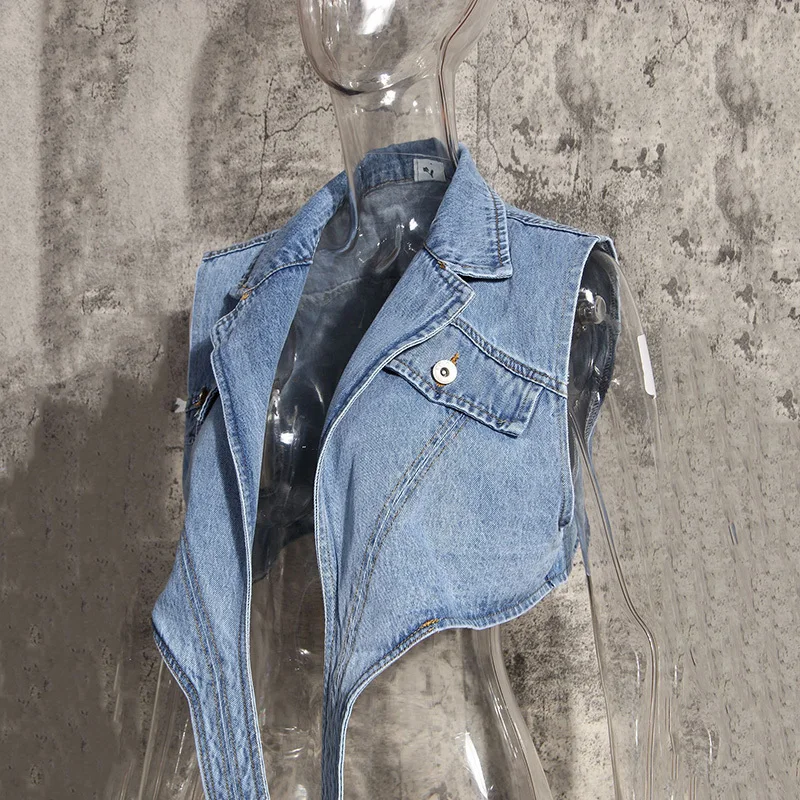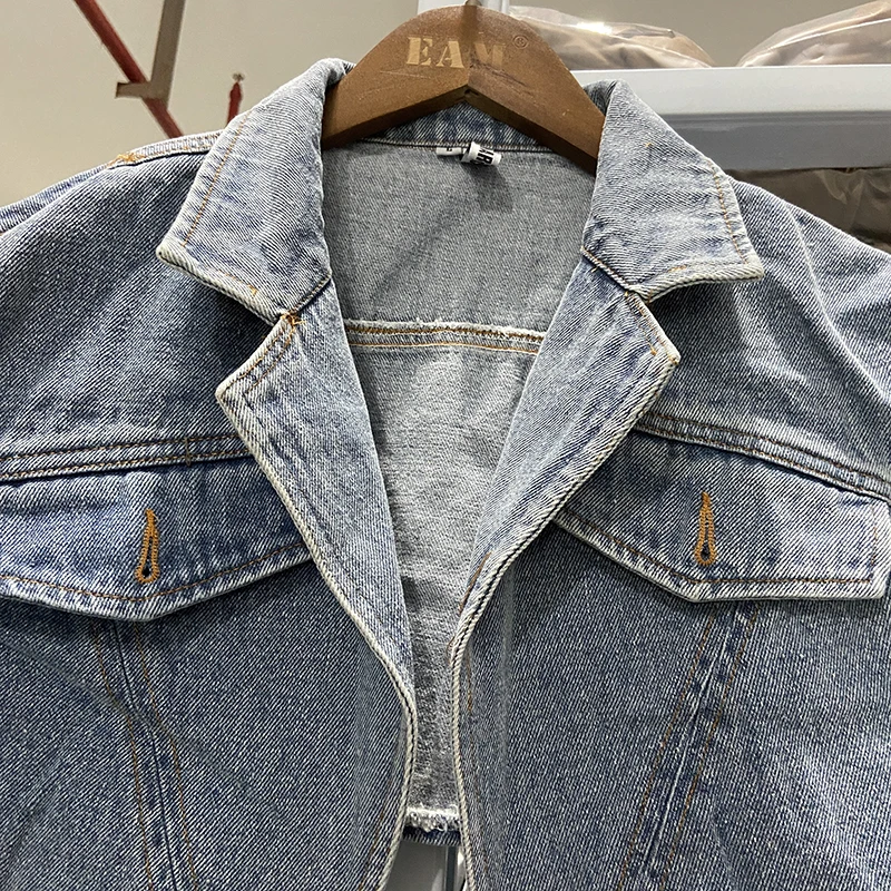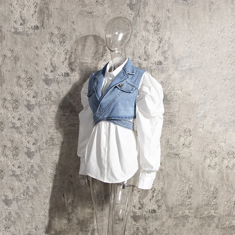 DEAT Women Blue Denim Single Breasted New Lapel Long Puff Sleeve Shirt Fashion Tide Autumn Two Pieces Top 2021 1Z595