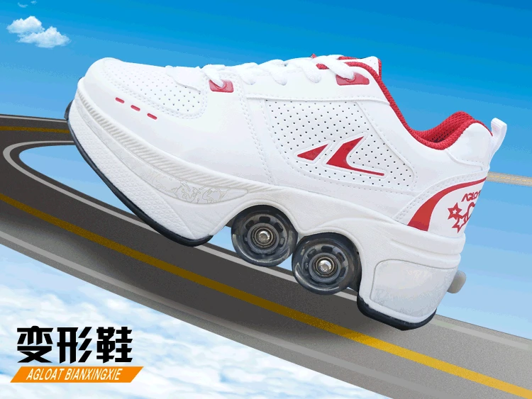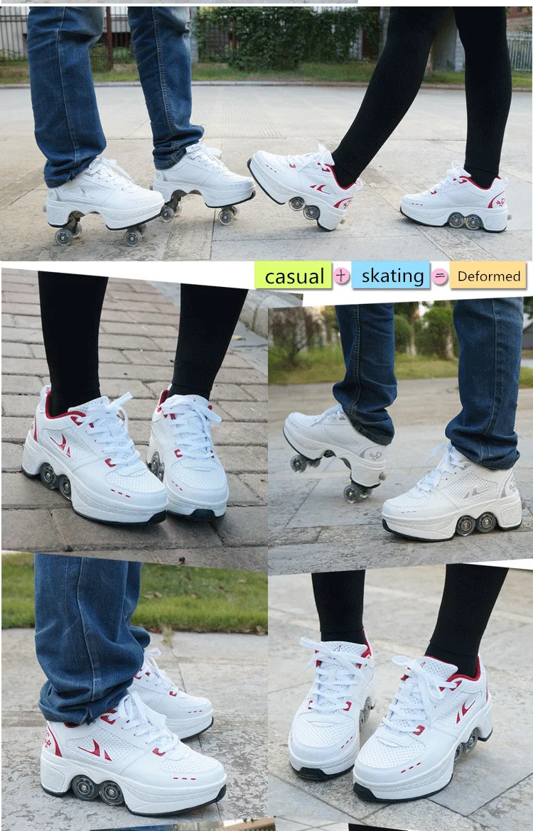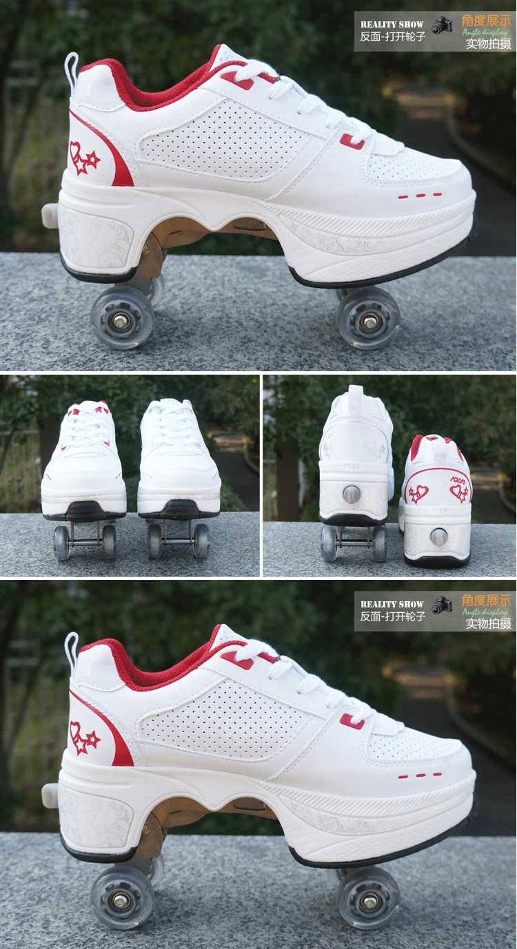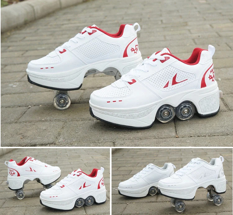 Deformation Shoes Double Row Double-Wheel Casual Roller Shoes Automatic Four-Wheel Dual-Purpose Roller Skates Skateboard Shoes