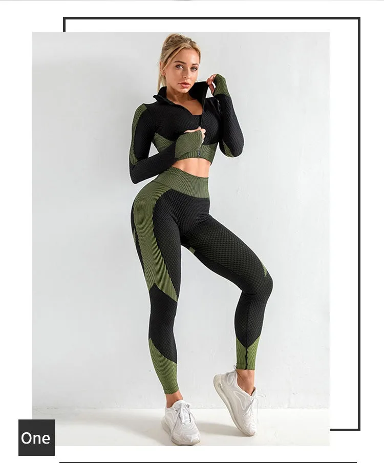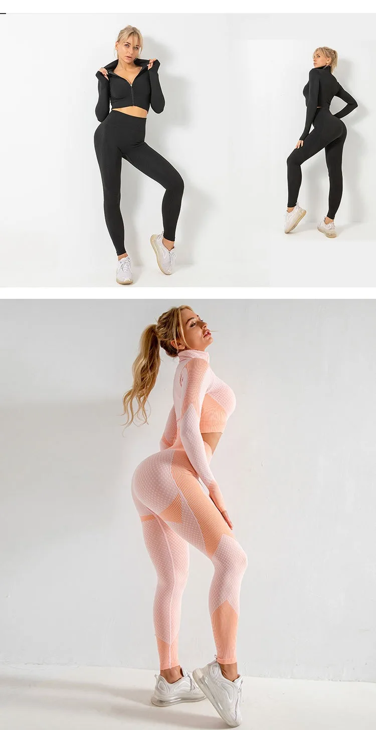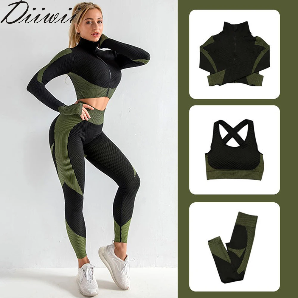 DiiWii Seamless Women Sets Female Gym Suits Wear Running Clothes Fitness Sport Long Sleeve Clothing