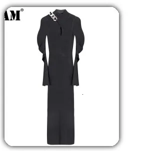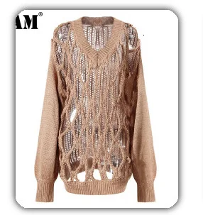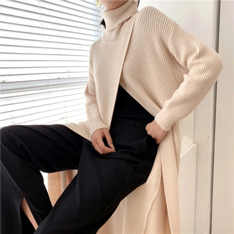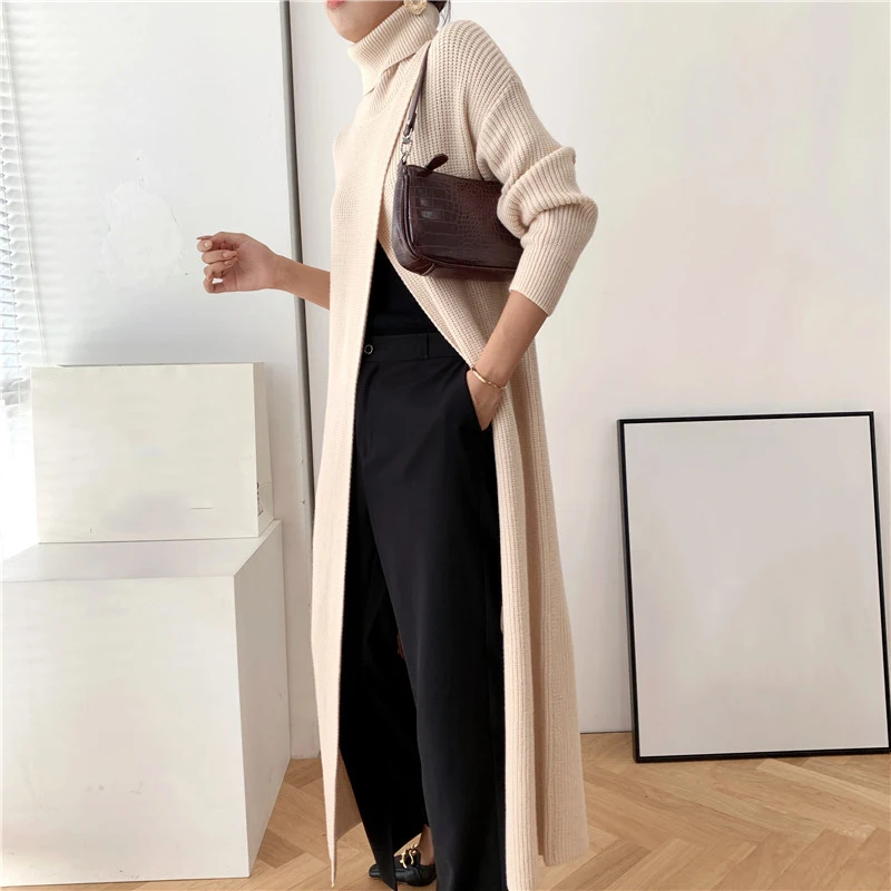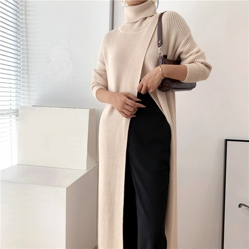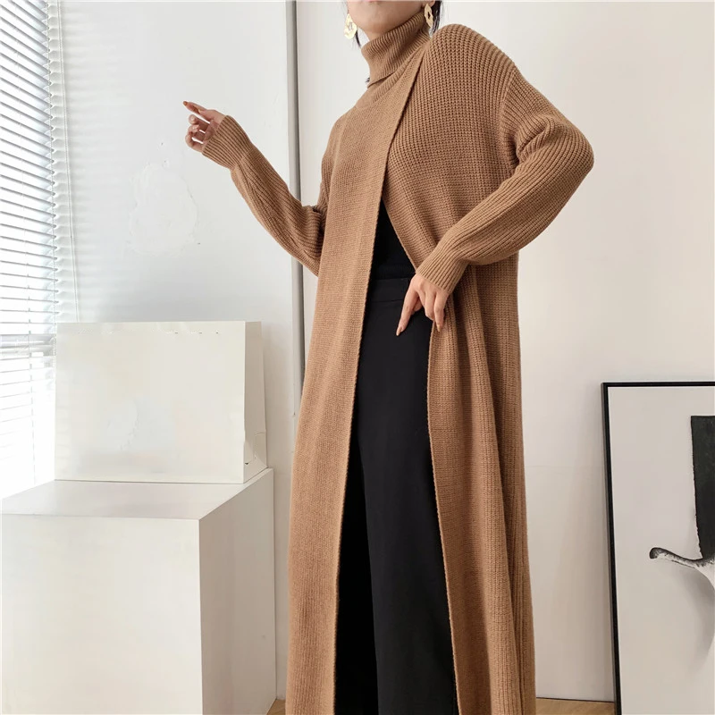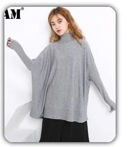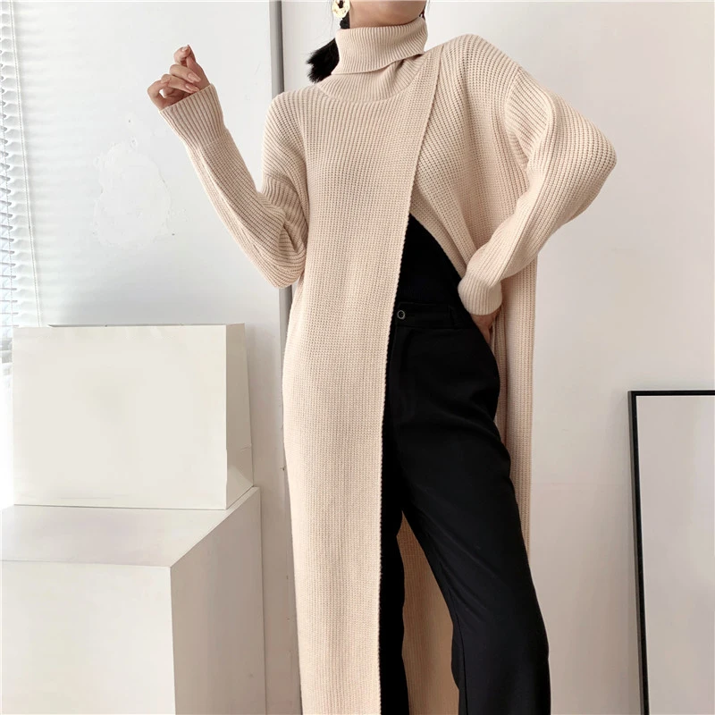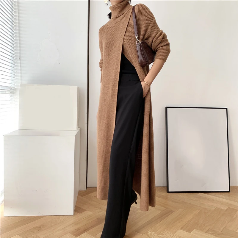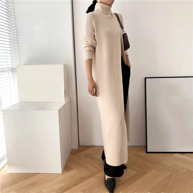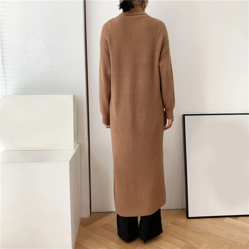 [EAM] Vent Long Knitting Sweater Loose Fit Turtleneck Long Sleeve Women Pullovers New Fashion Tide Autumn Winter 2021 1DA357
