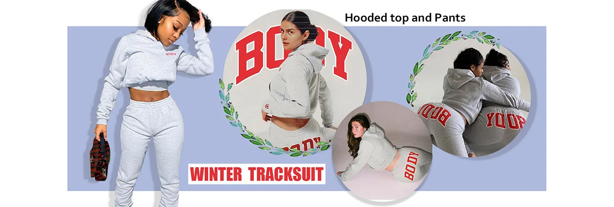 Echoine Winter Thick fleece Hoodies Tops and Pants Two Piece Set Women Tracksuit Crop Top Trousers Casual Sportwear Matching Set