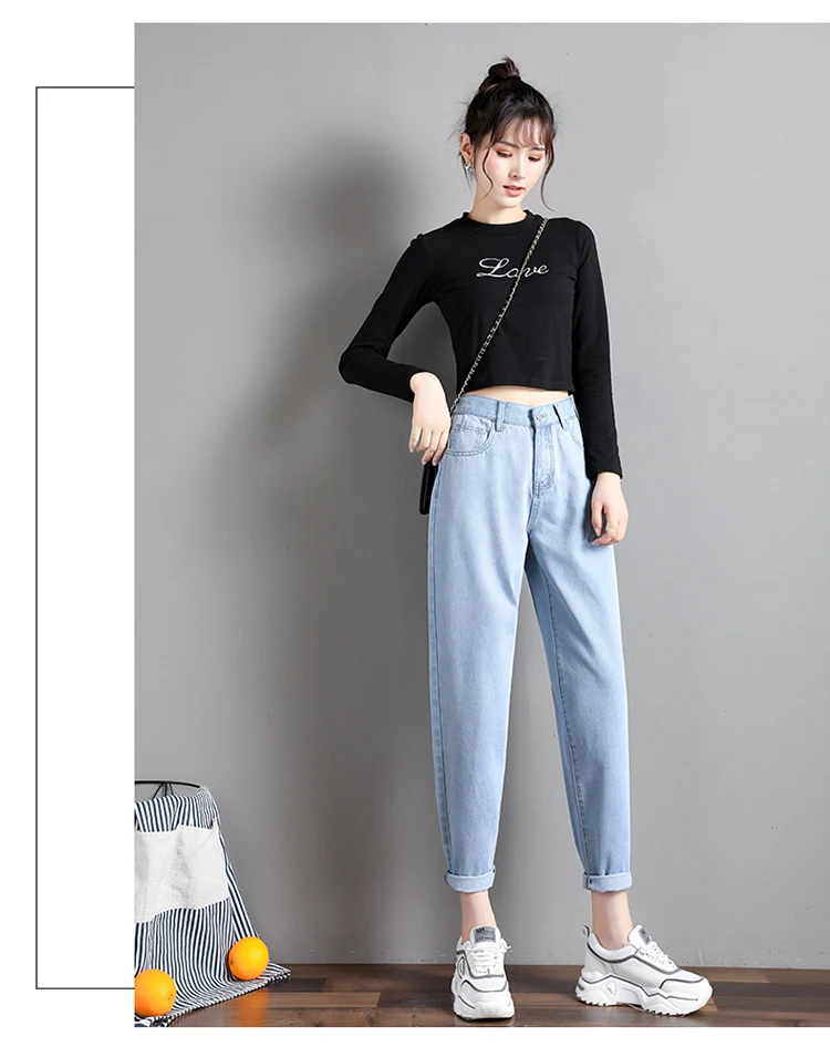 Elastic Waist Black Jeans Korean Fashion 4 Collor Mom Jeans High Waist Jeans High Street Plus Size Denim Pants Street Style