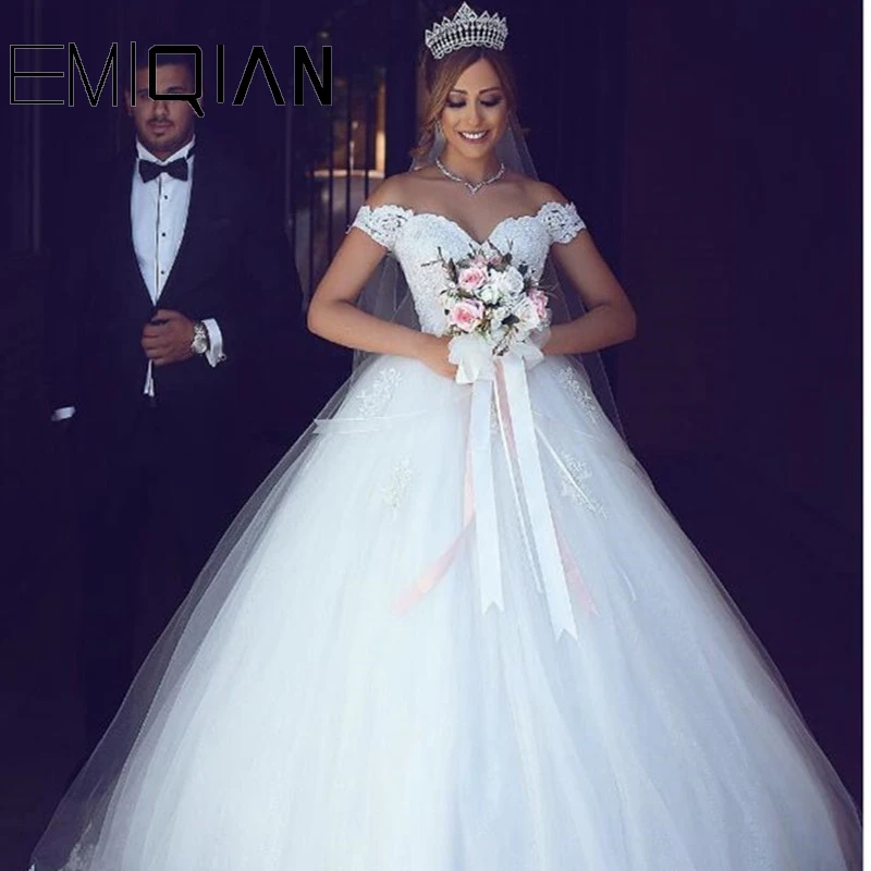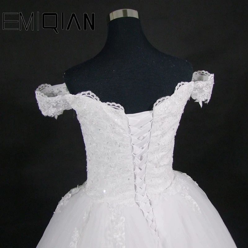 Elegant A-Line Sweetheart Off the Shoulder Court Train Tulle Wedding Dress See-through Back Appliques Lace Bridal Gowns