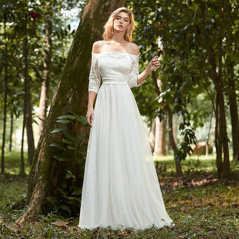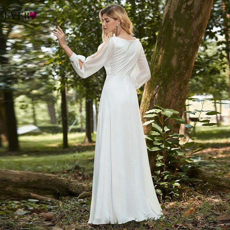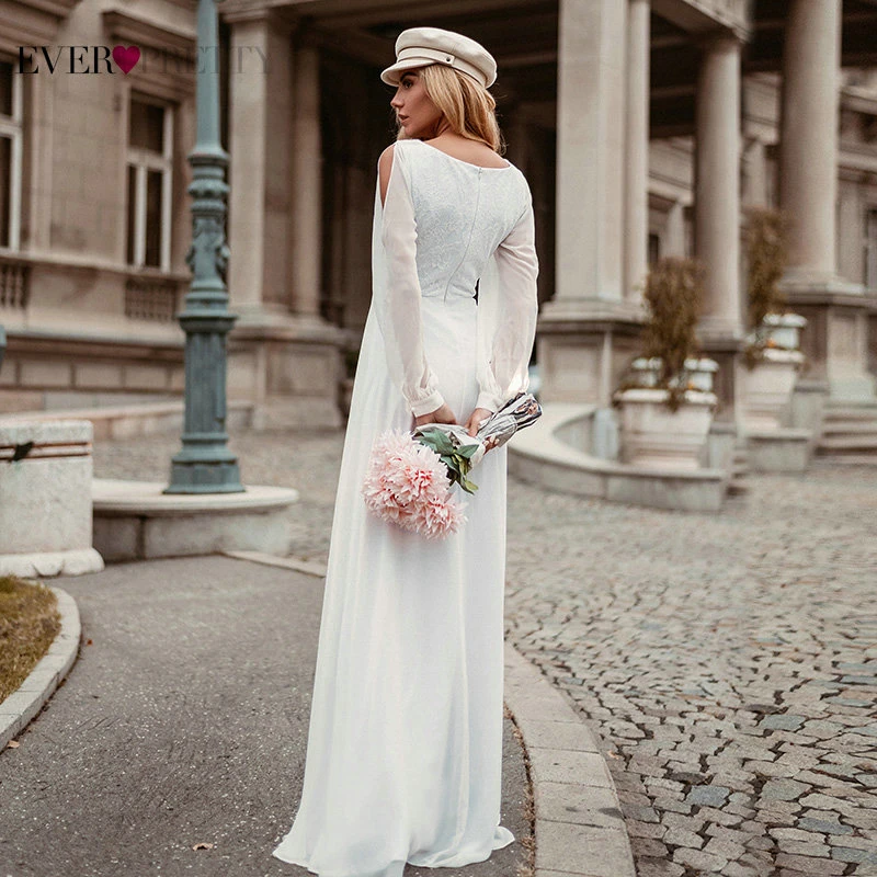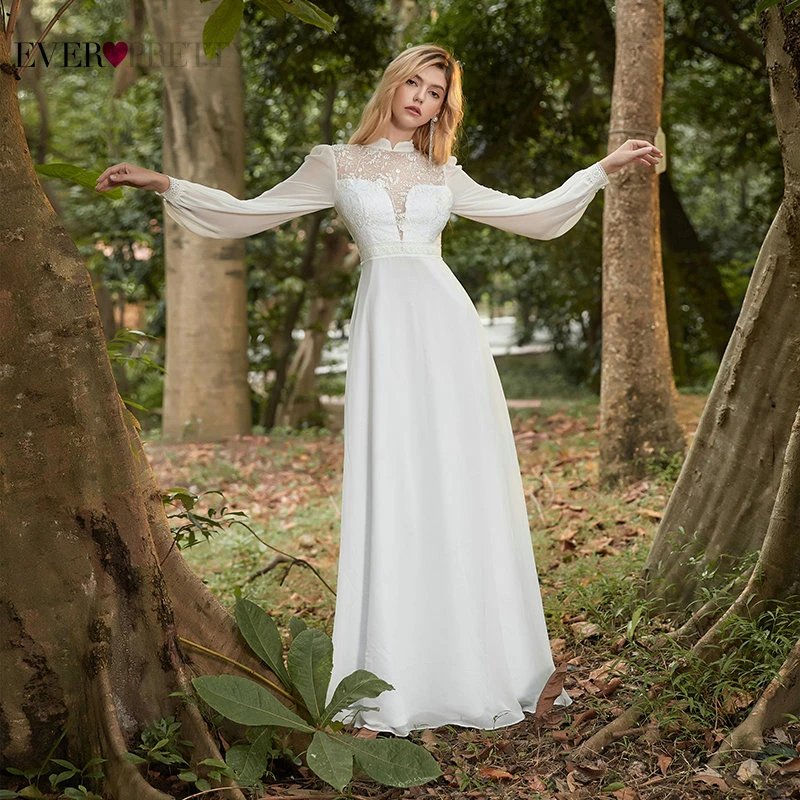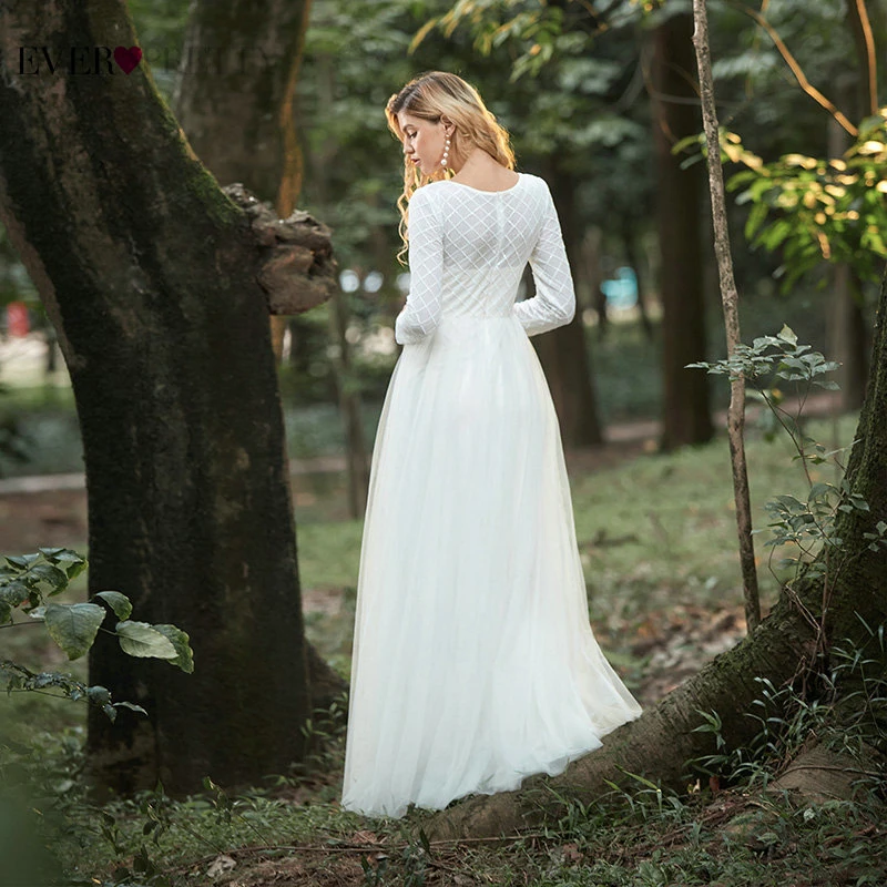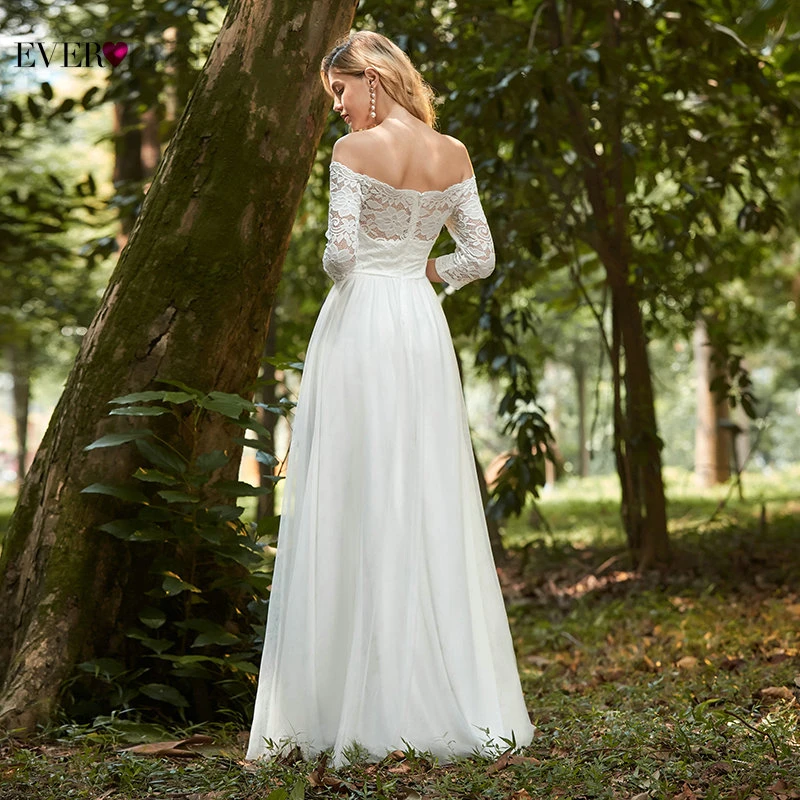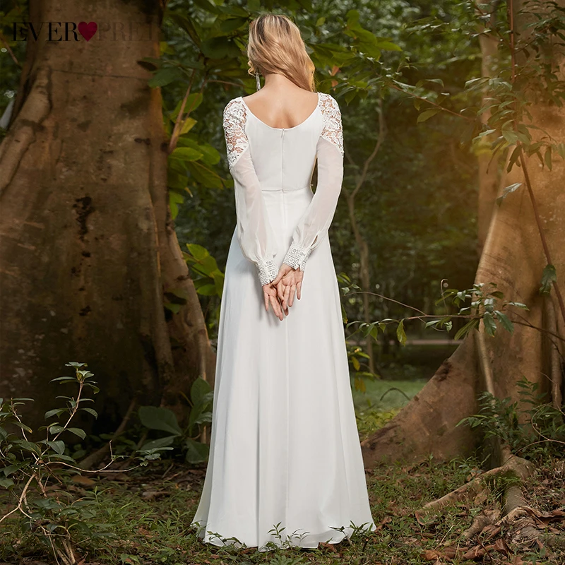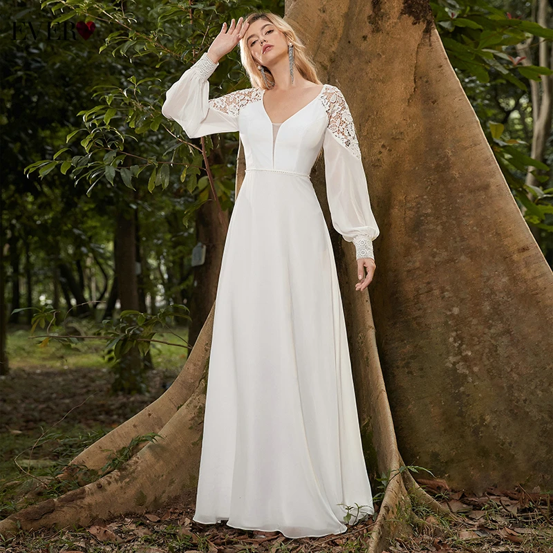 Elegant Boho Dress Lace Wedding Dresses Long Sleeve Ever Pretty A-Line V-Neck White Sexy Bridal Gowns Robe De Mariee EP00458WH