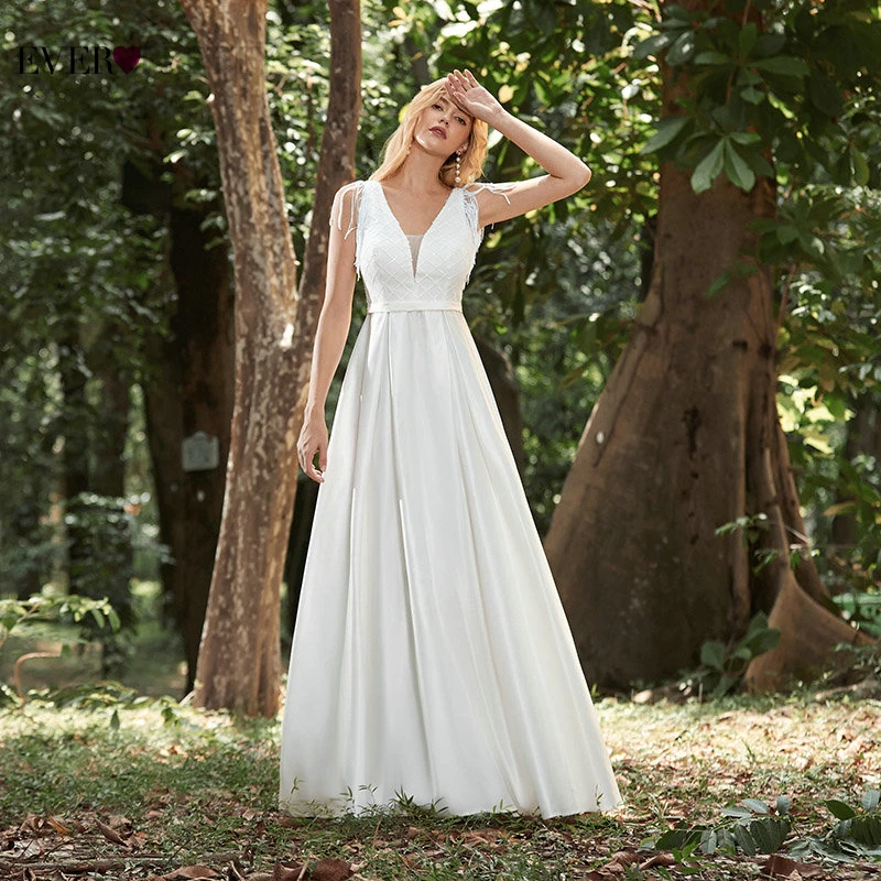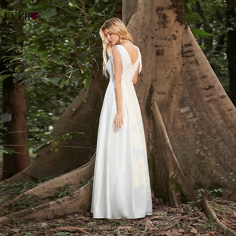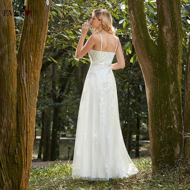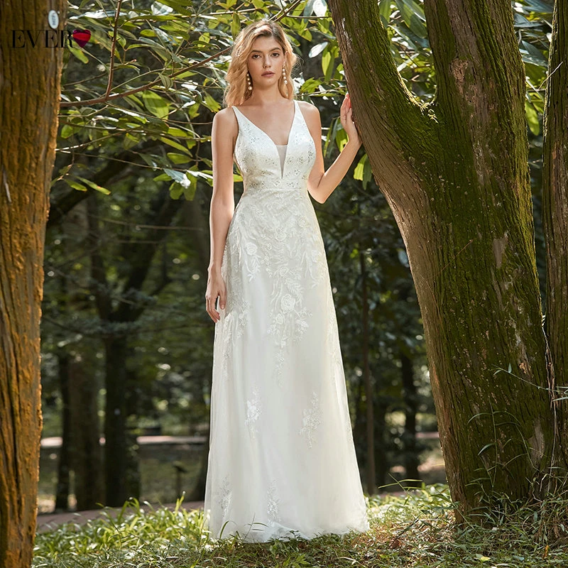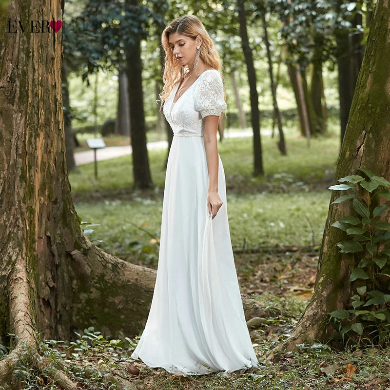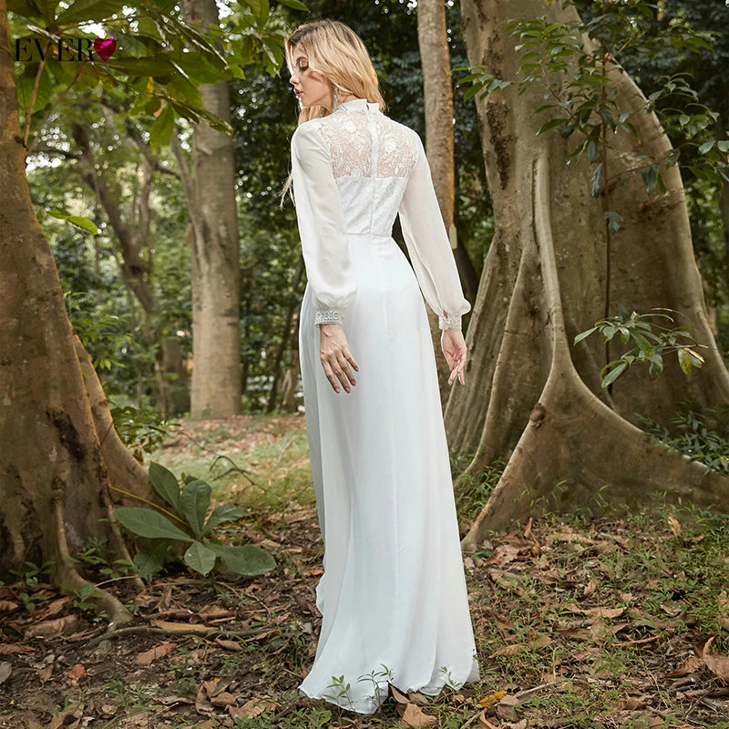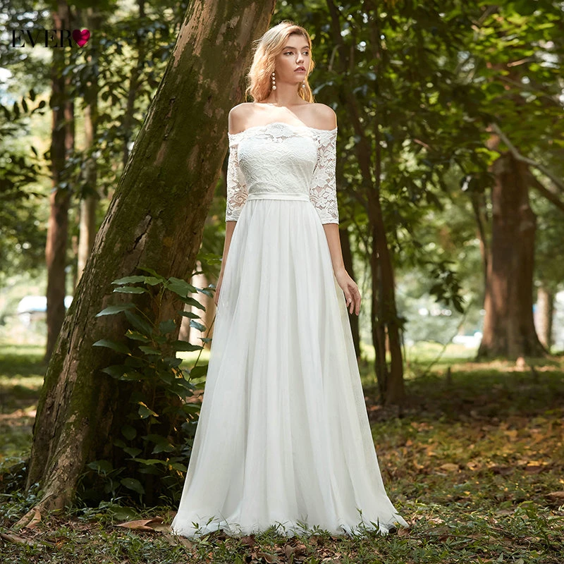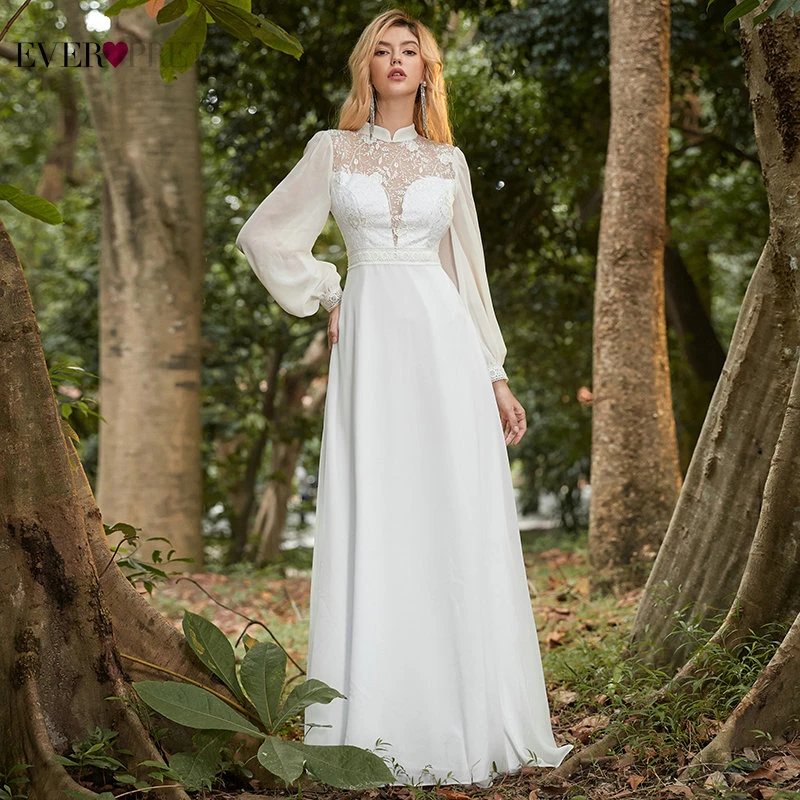 Elegant Boho Dress Lace Wedding Dresses Long Sleeve Ever Pretty A-Line V-Neck White Sexy Bridal Gowns Robe De Mariee EP00458WH