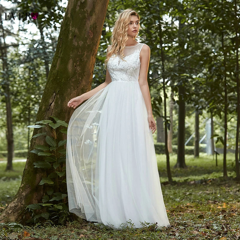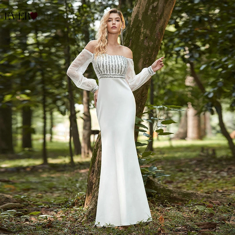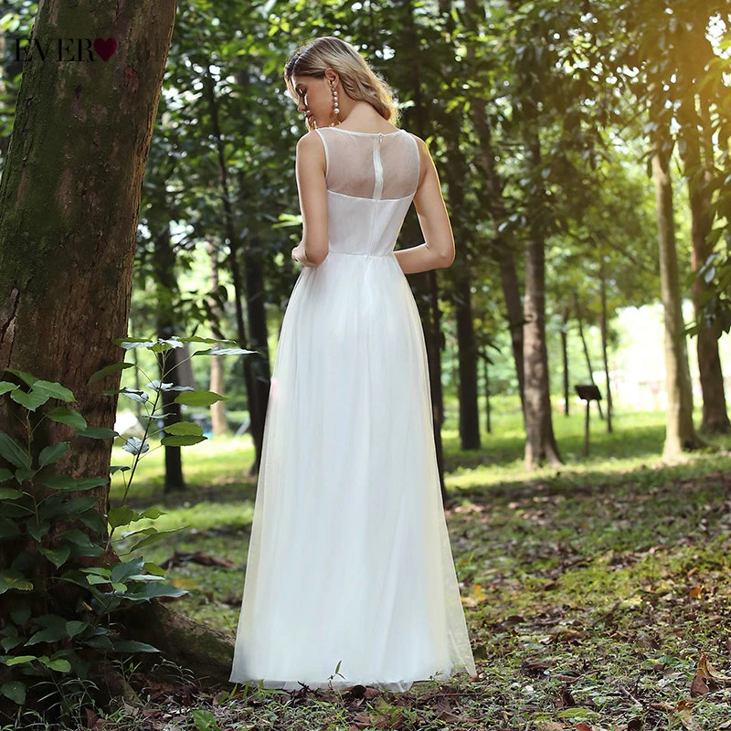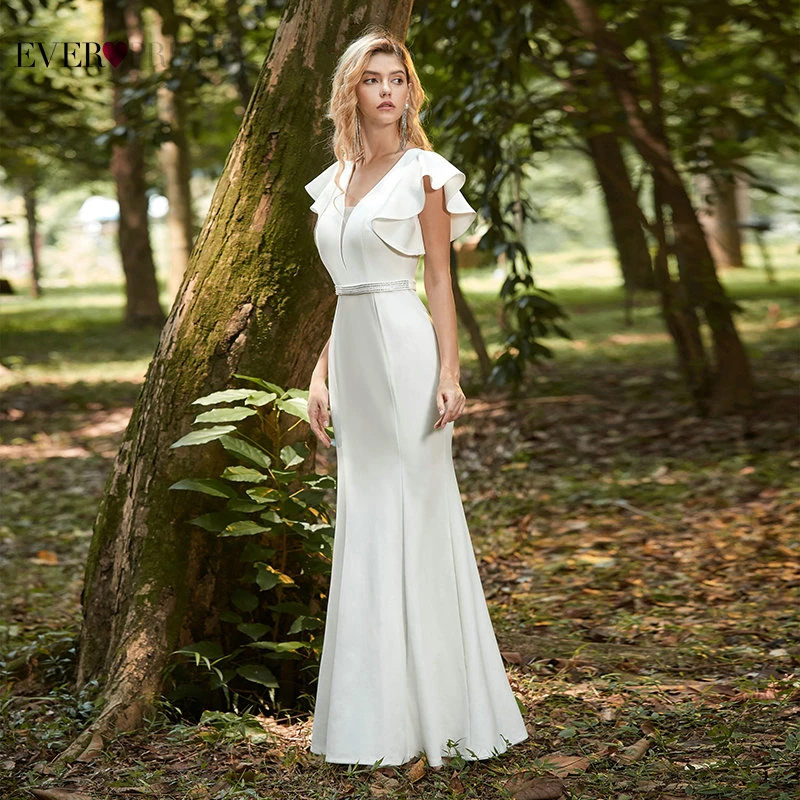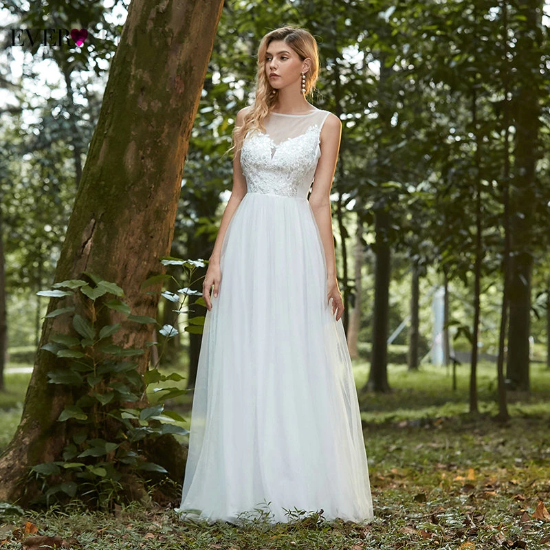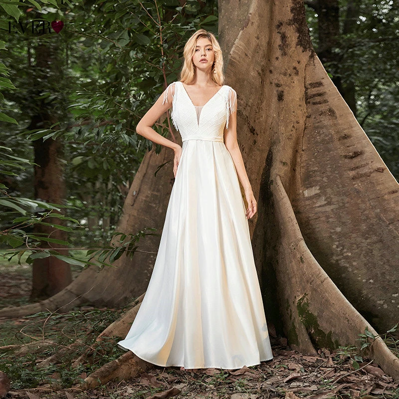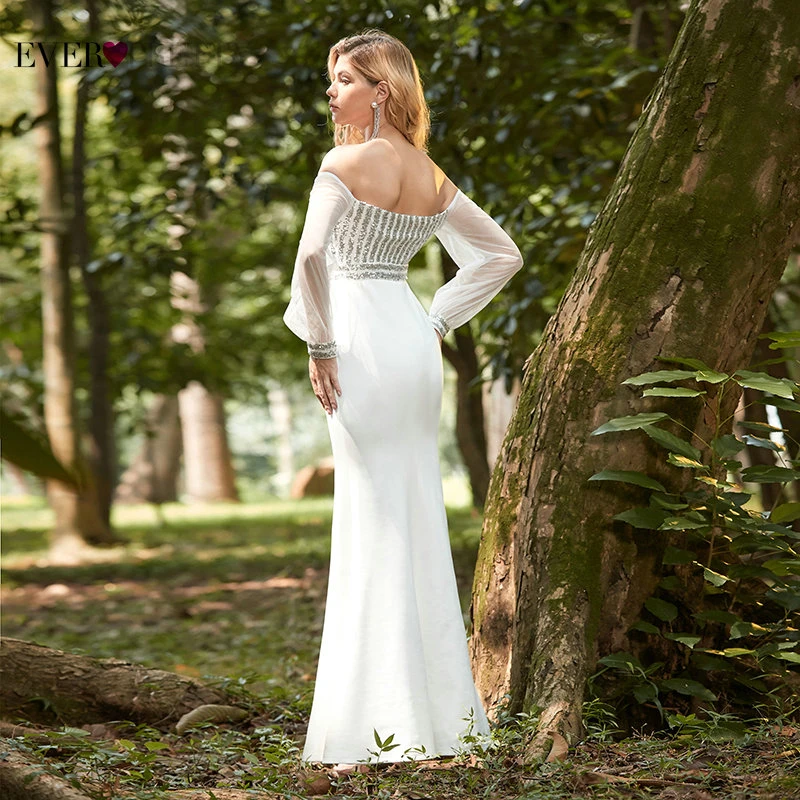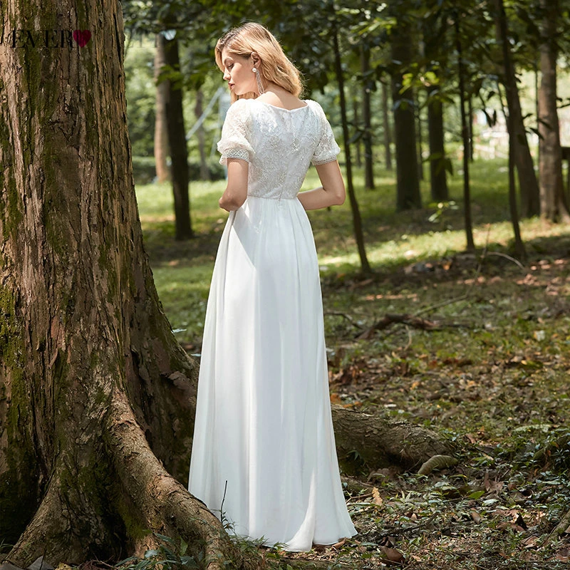 Elegant Boho Dress Lace Wedding Dresses Long Sleeve Ever Pretty A-Line V-Neck White Sexy Bridal Gowns Robe De Mariee EP00458WH
