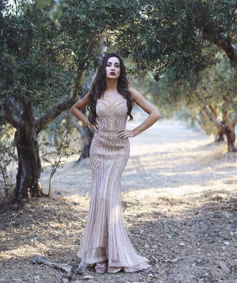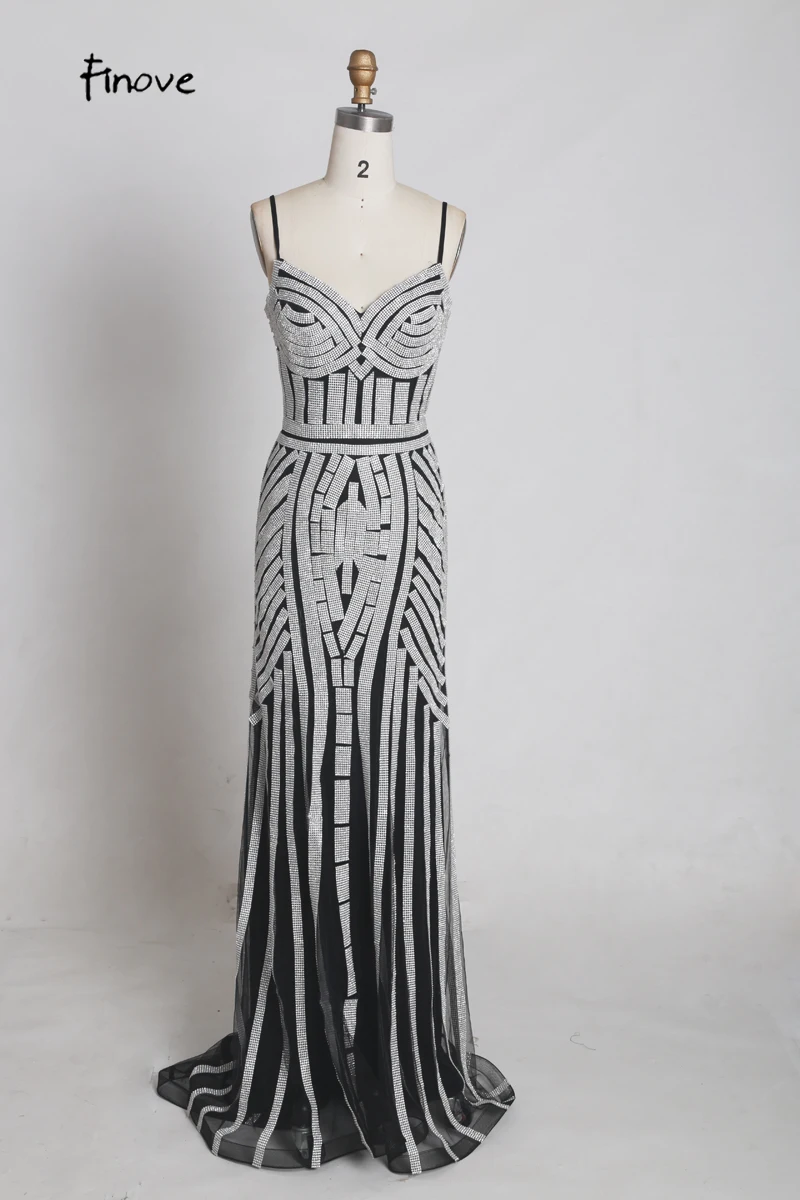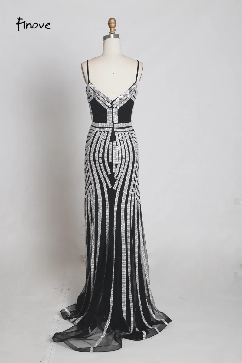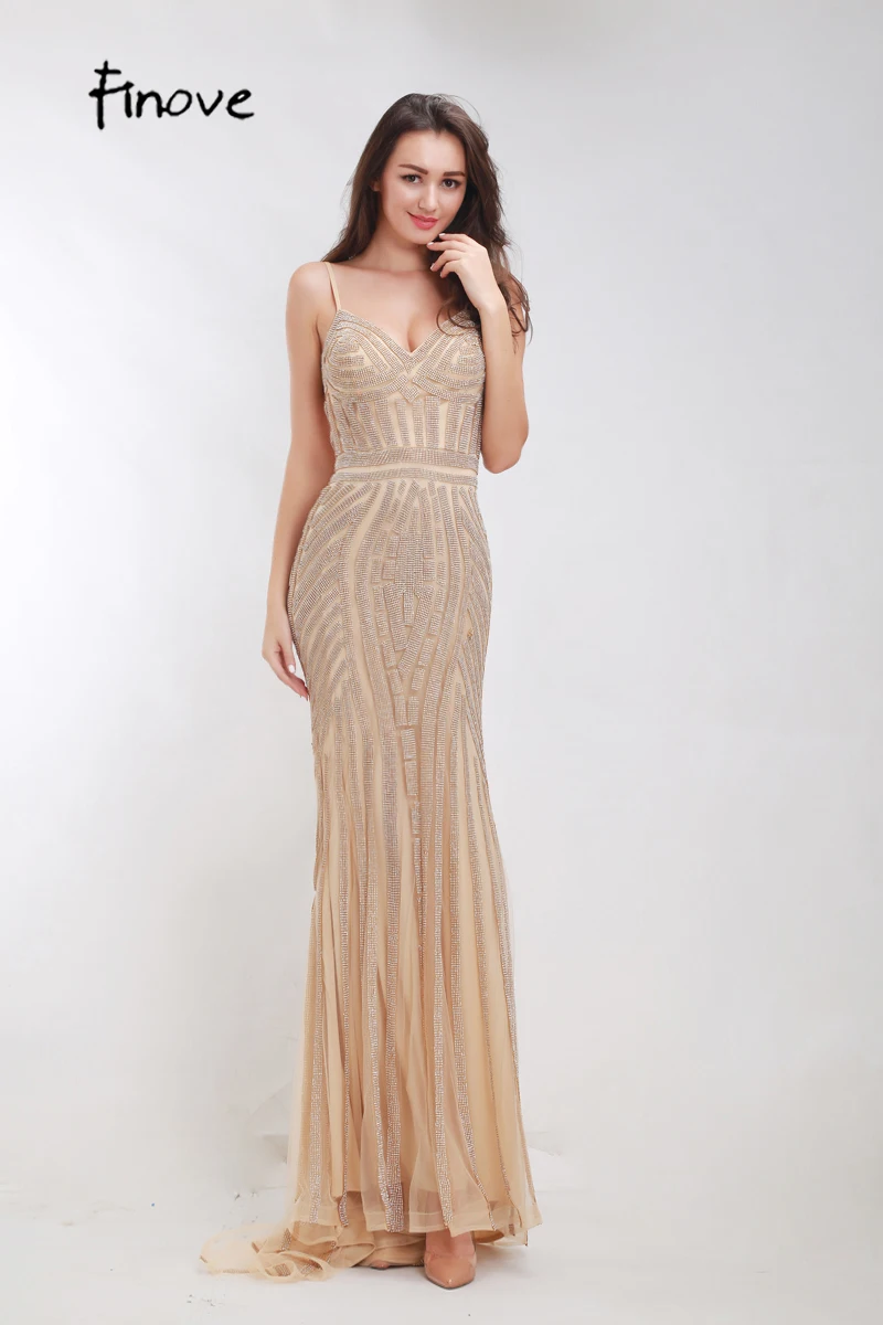 Elegant Evening Dresses 2020 Champagne V-neck Sleeveless Sexy Formal Crystal Beading Party Long Prom Dresses for Woman Finove