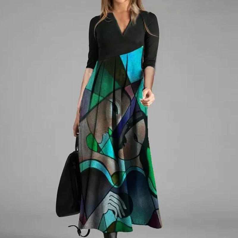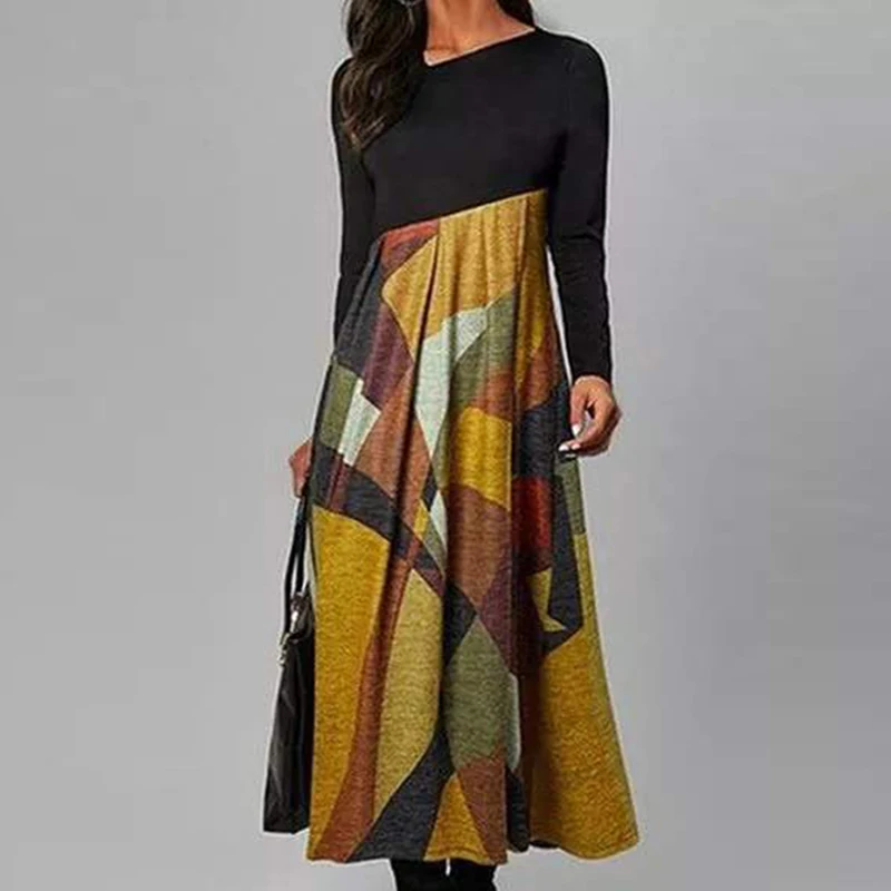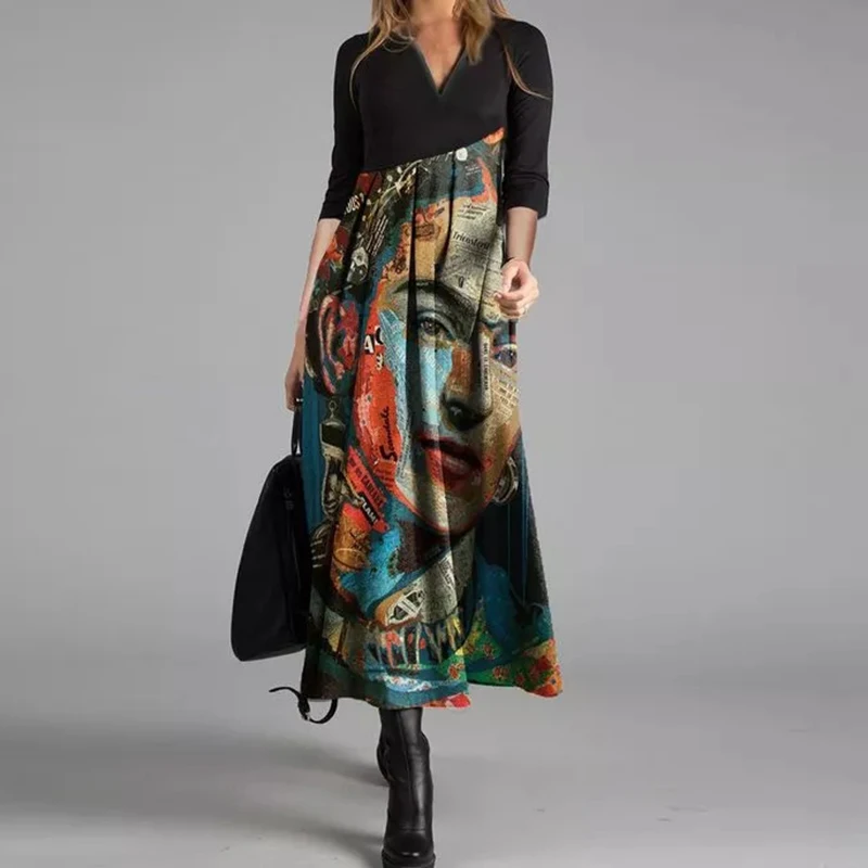 Elegant Women Dress Autumn 2020 Winter Retro Print Party Dresses Cross V-Neck Long Sleeves Slim Midi Dress Lady Casual Veatidos