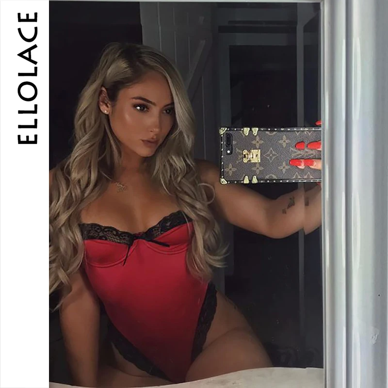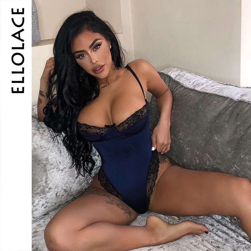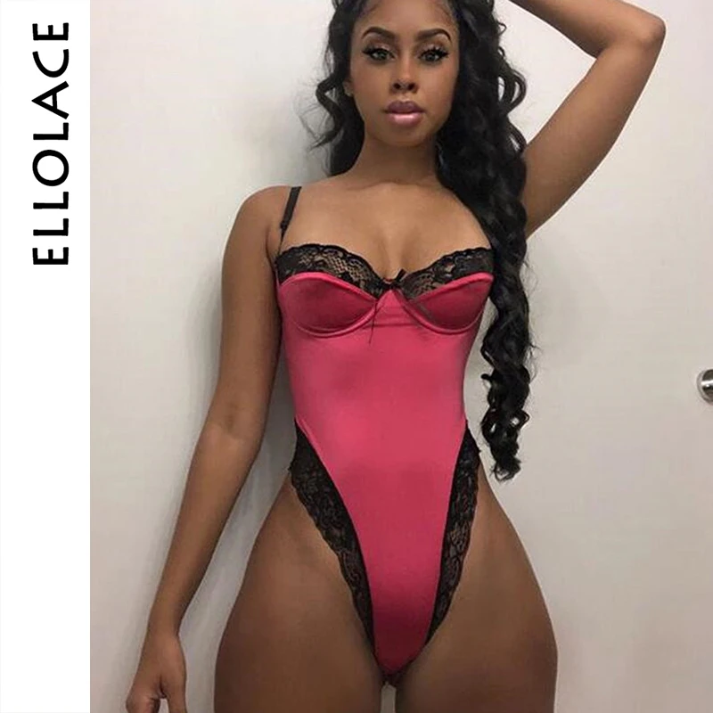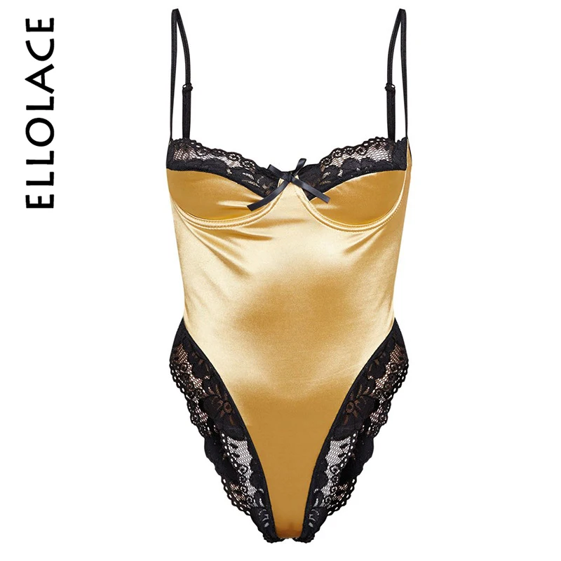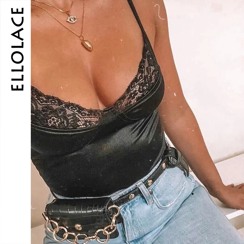 Ellolace Satin Lace Bodysuit Women Sexy Bodycon Overalls Sleeveless Female Body For Women Body New Rompers Bodysuit Overalls