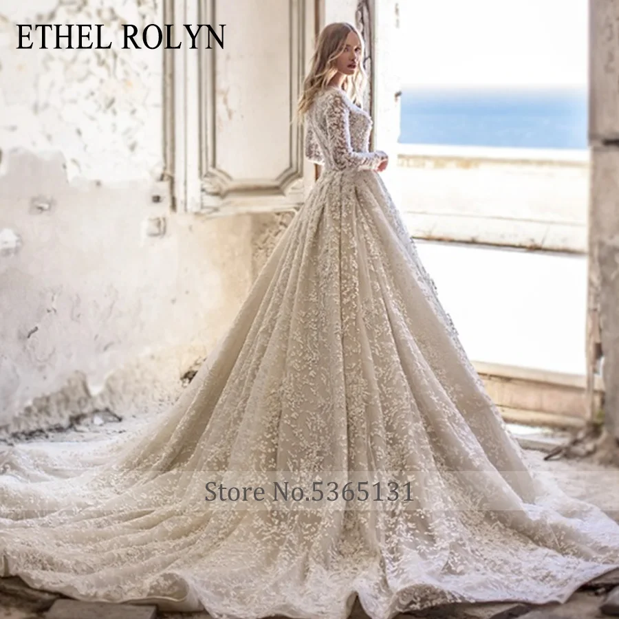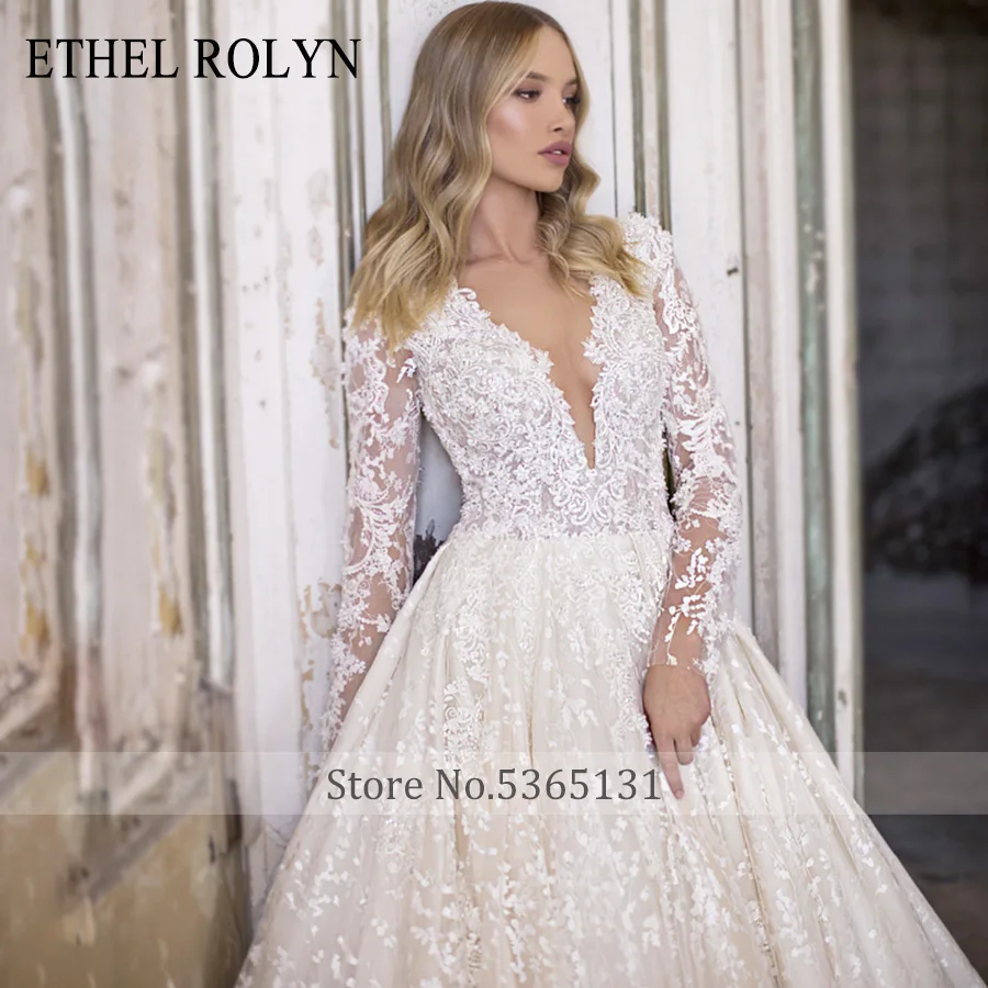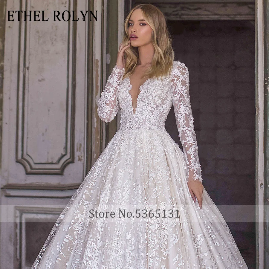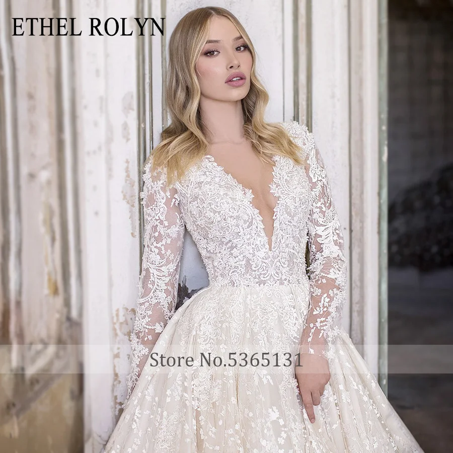 ETHEL ROLYN A-Line Lace Wedding Dress 2020 Romantic V-neck Long Sleeve Beading Appliques Bride Dresses Princess Bridal Gowns