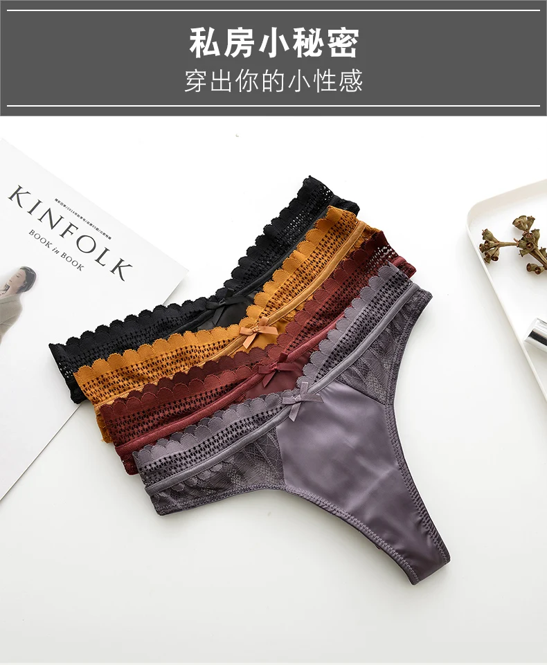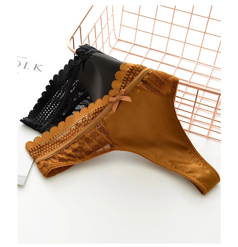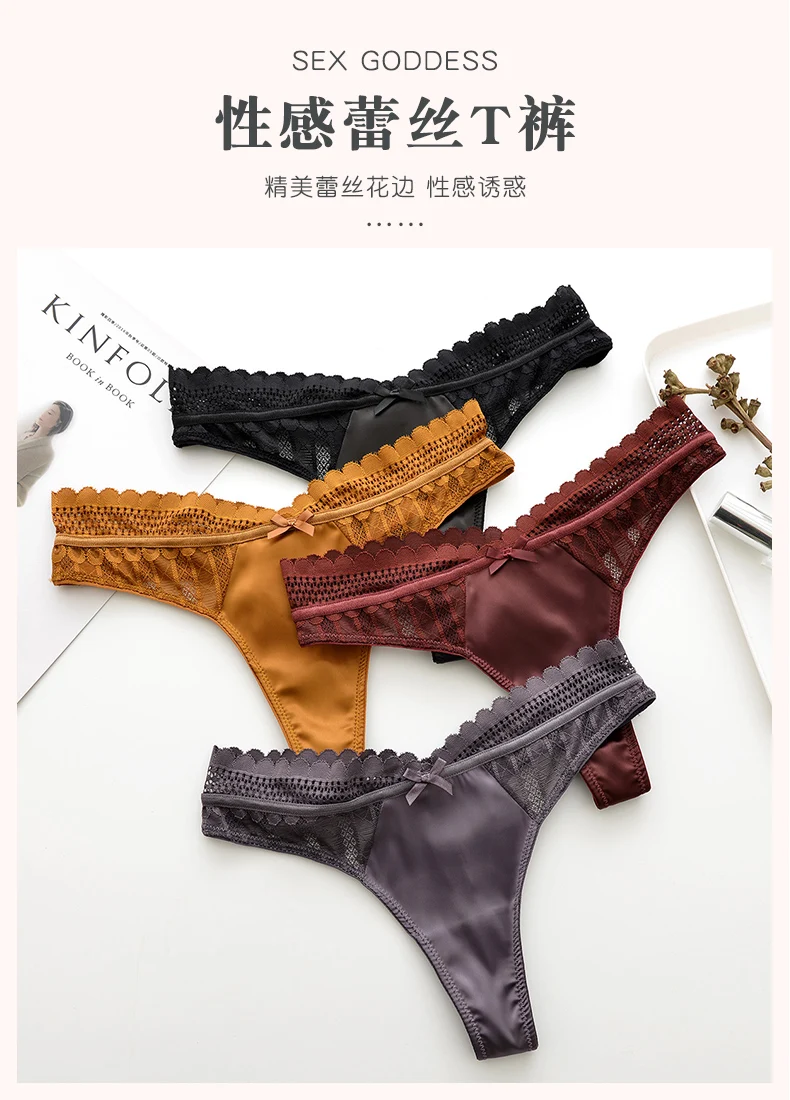 Europe Royal Style Satin Underwear Women Thongs Bragas Sexy Panties Women Lingerie Lace Satin T Panties G-String Women Briefs