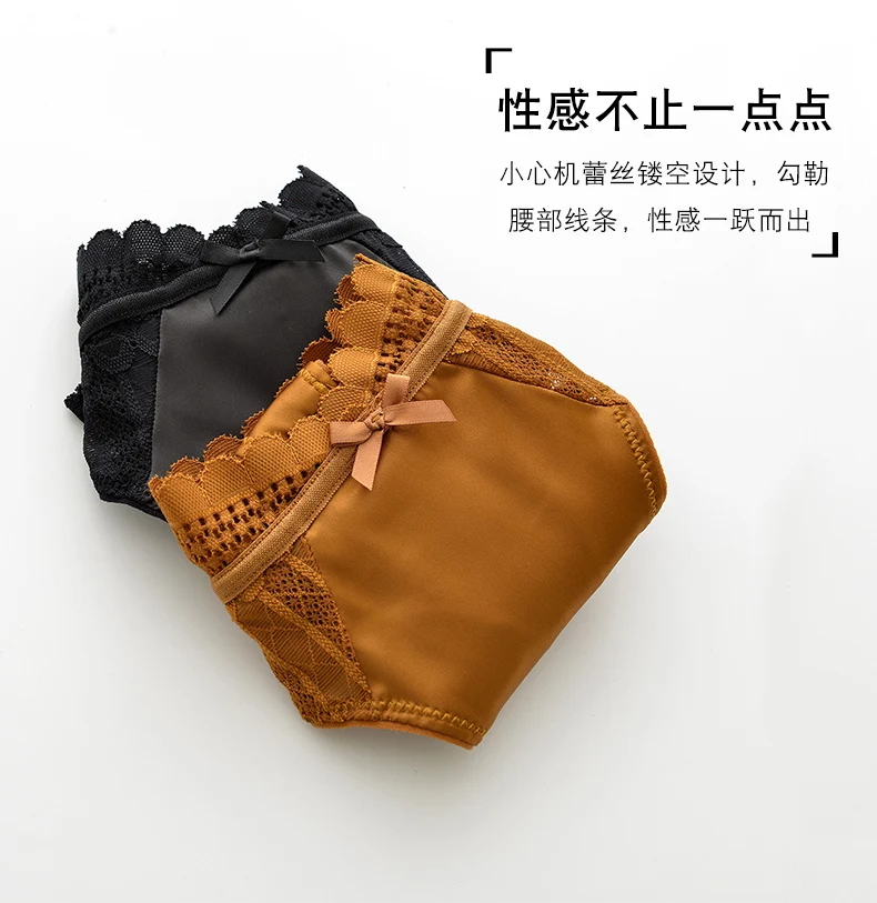 SIZE M:waist60-72cm weight40-60kg L:waist70-85cm weight55-70kg Product Name Sexy satin pretty girl thong Material LACE:Nylon88% Spandex12% SATIN:Polyester92% Spandex8% CROTCH:Cotton100% FEATURES *SOFT COMBOD COTTON *COTTON CLOSE TO HEALTH *COMFORTABLE