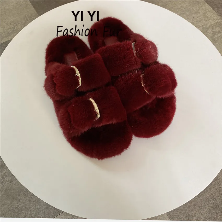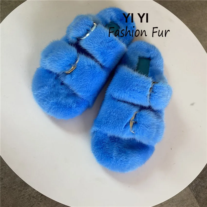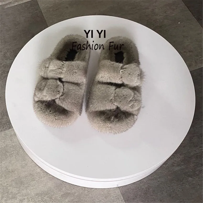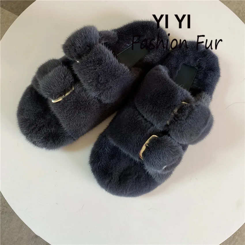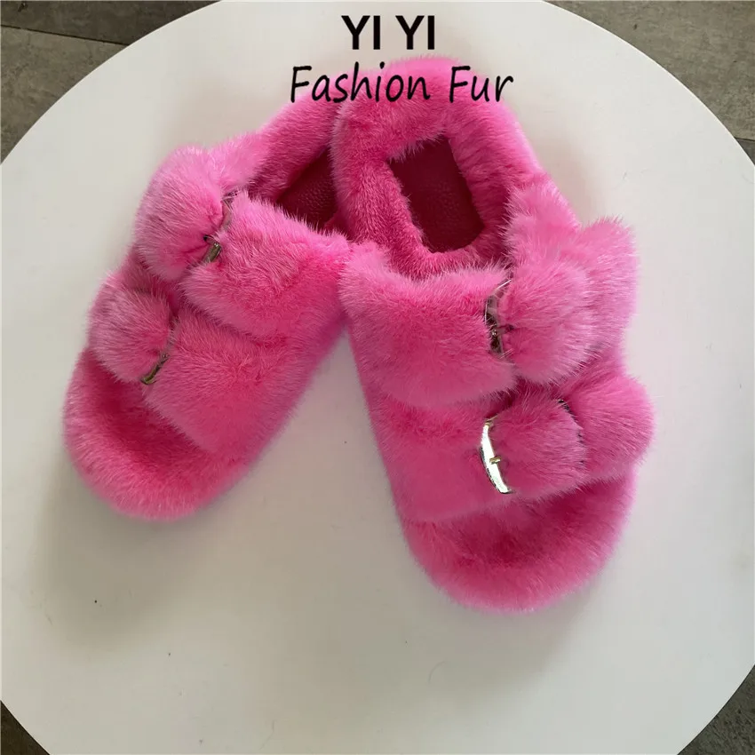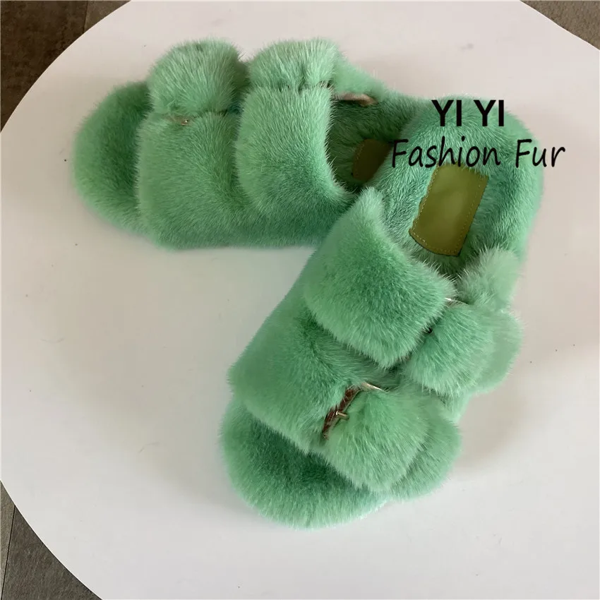 European Station Luxury Fashion Fur Slippers High Quality Mink Fur Slippers Ladies 100% Mink Fur Slippers Flat Heel Slippers