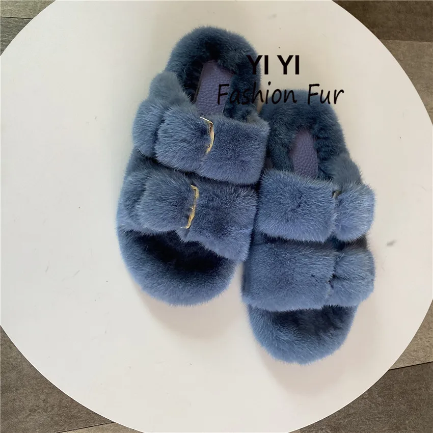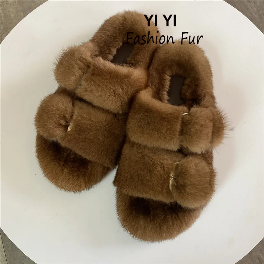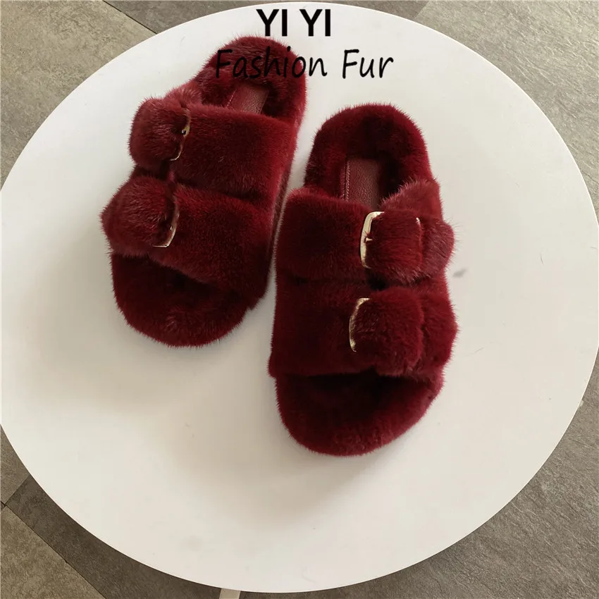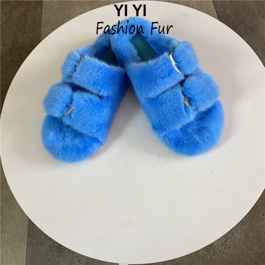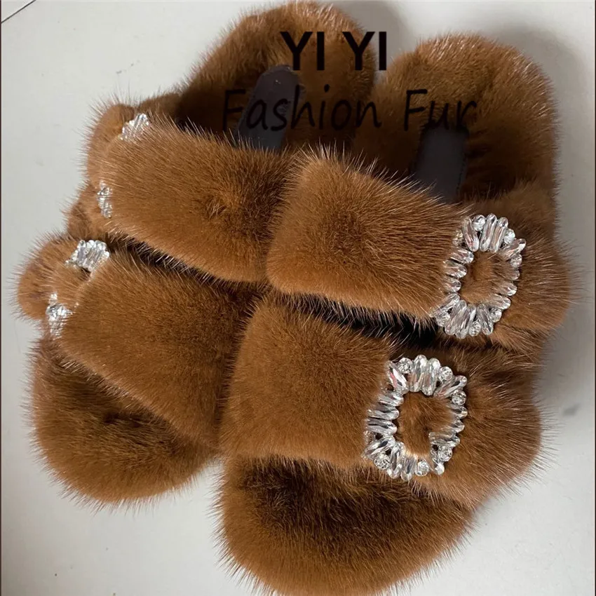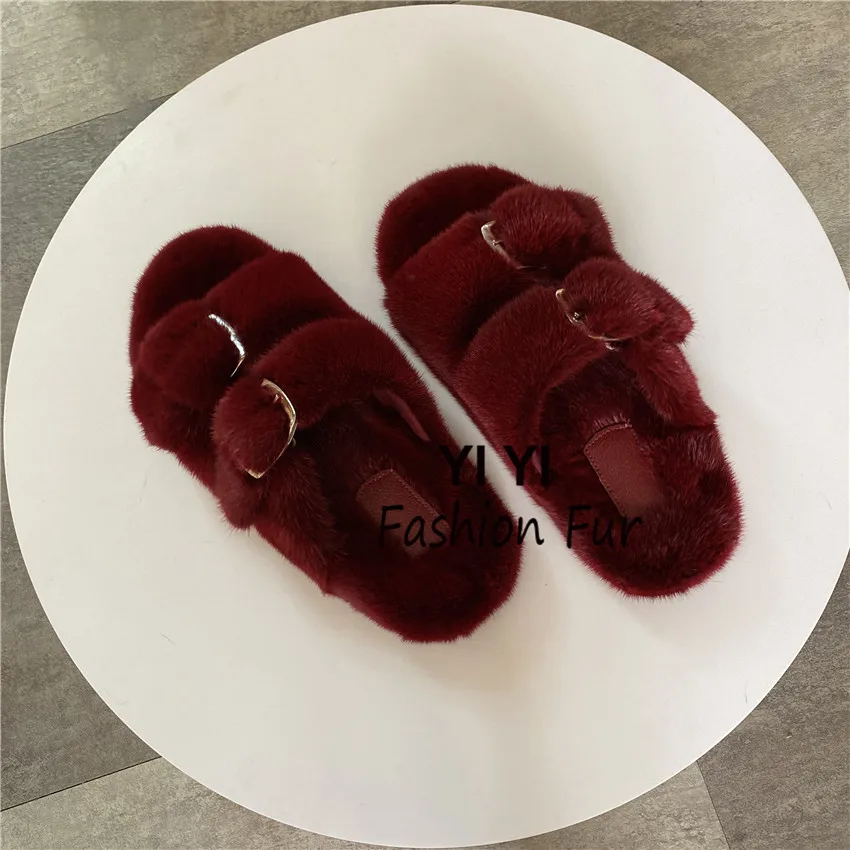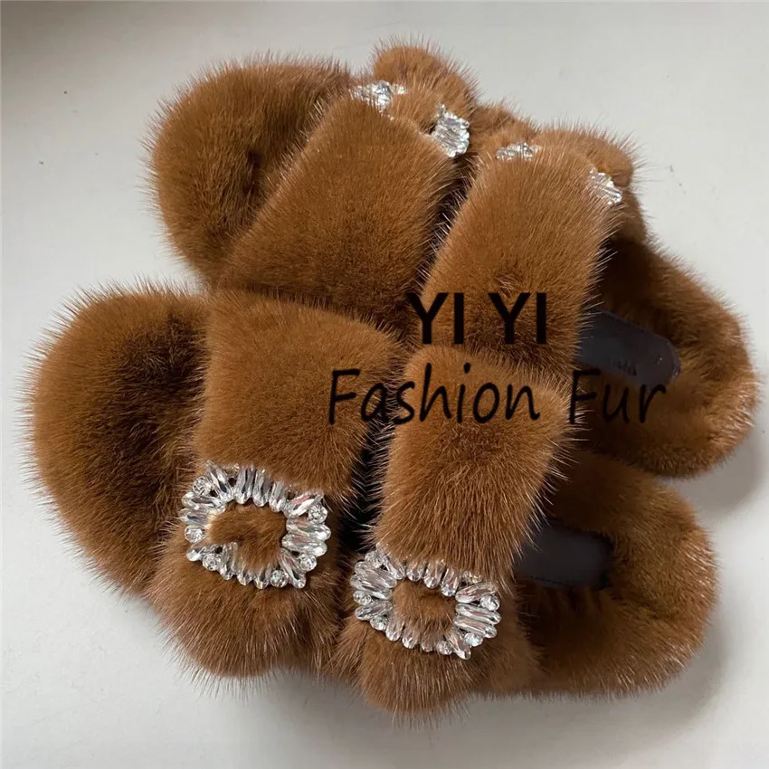 European Station Luxury Fashion Fur Slippers High Quality Mink Fur Slippers Ladies 100% Mink Fur Slippers Flat Heel Slippers