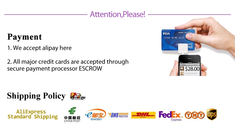 Packages from our warehouse in China will be shipped by ePacket or EMS depending on the weight and size of the product. Packages shipped from our US warehouse are shipped through USPS.
