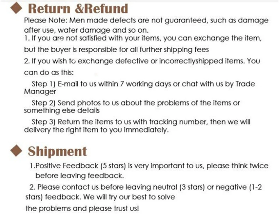 It's okay to change your mind! You can send your order back for a full refund, we've got you covered with our full Buyer protection.