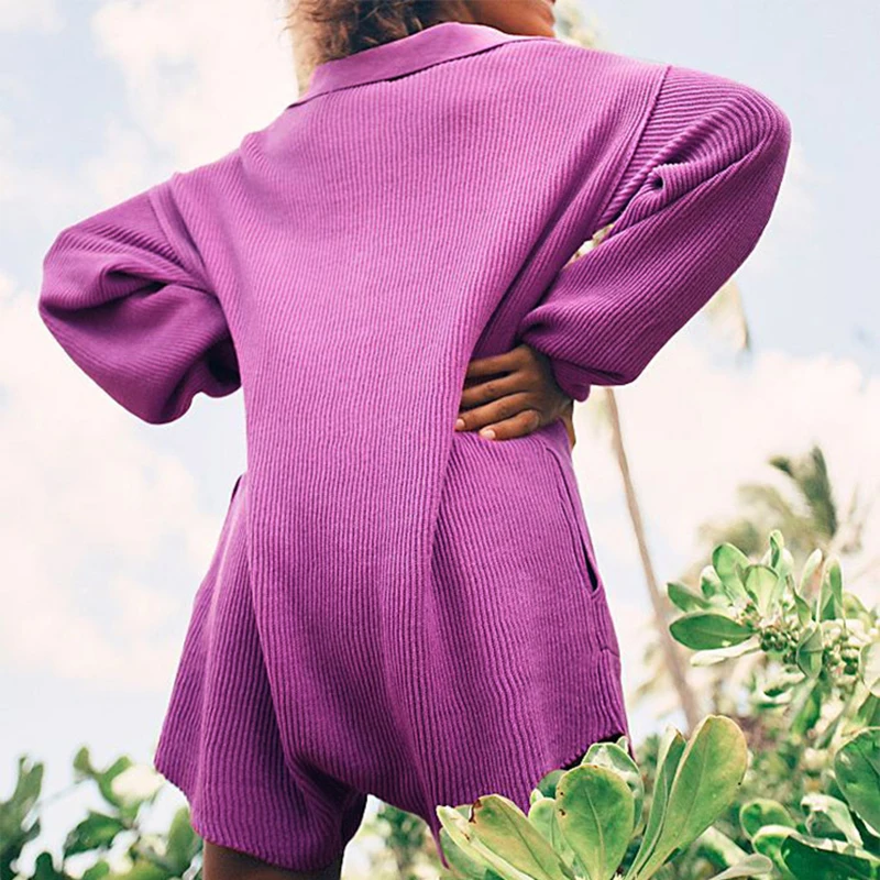 Fall New Solid Color Knit Sweater Jumpsuit Elegant Stand-up Collar Long Sleeve Button Pocket Jumpsuit Casual Women Home Jumpsuit