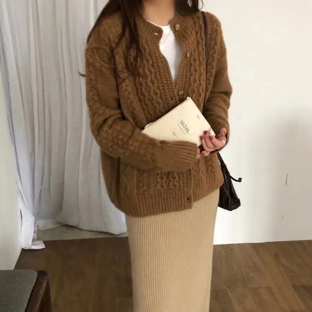 Fall winter new style cashmere sweater cardigan women loose lazy o-neck twist cardigans knitted jacket