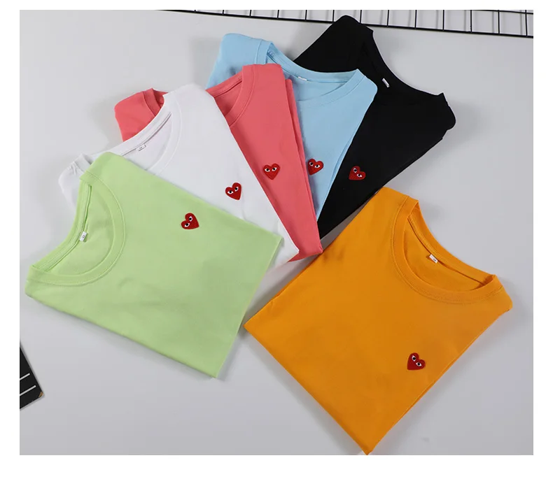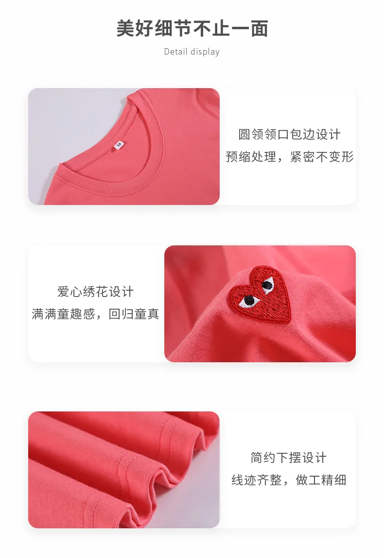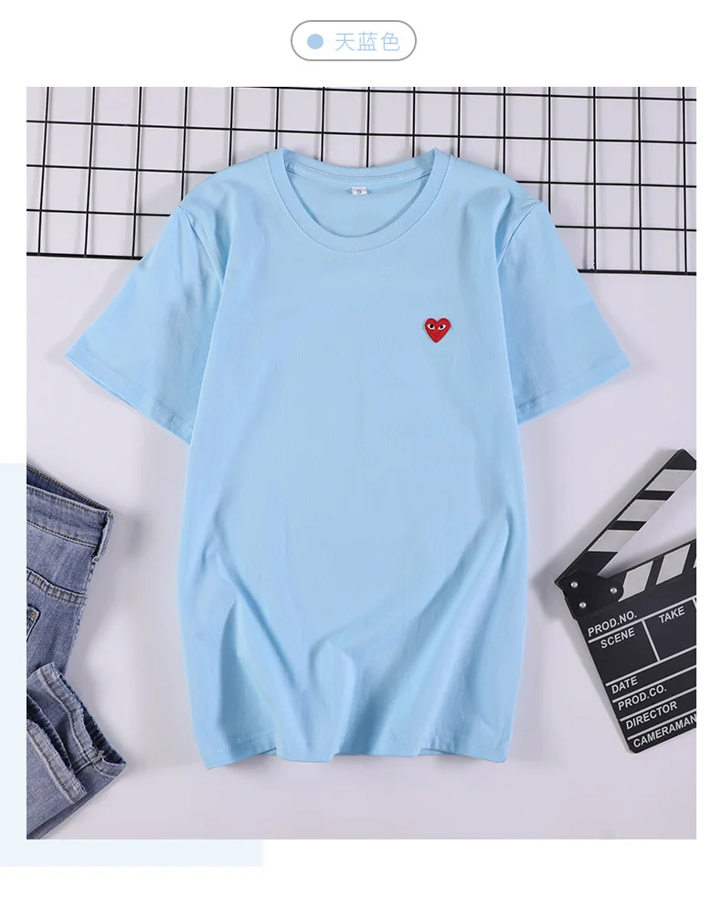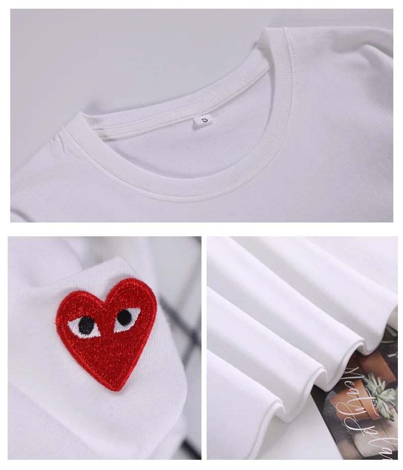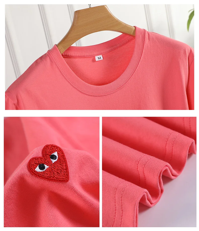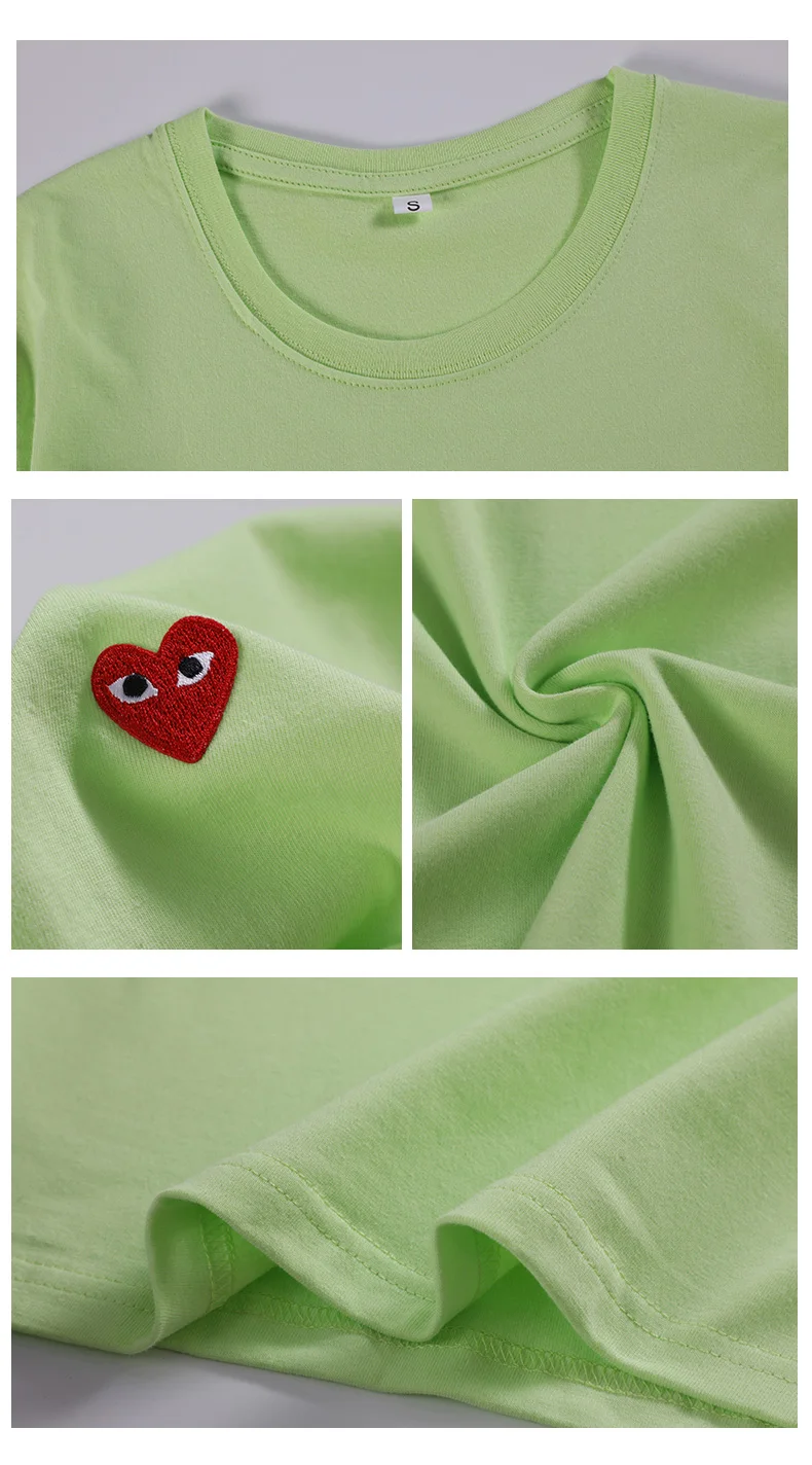 Fashion Couple pure cotton T-Shirt CDG Casual Embroidery Love-Heart Breathable T-shirt Casual Summer Outfits For Man Women