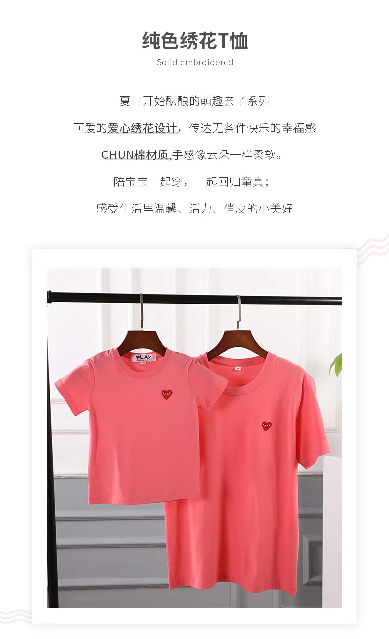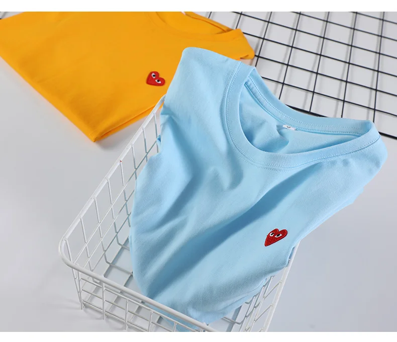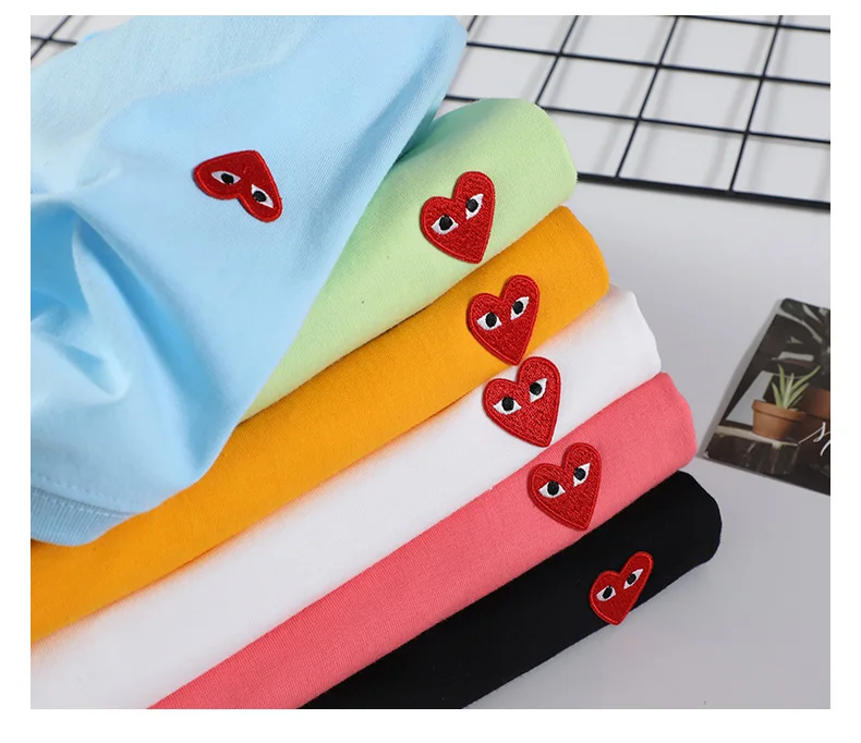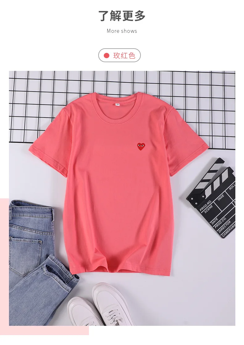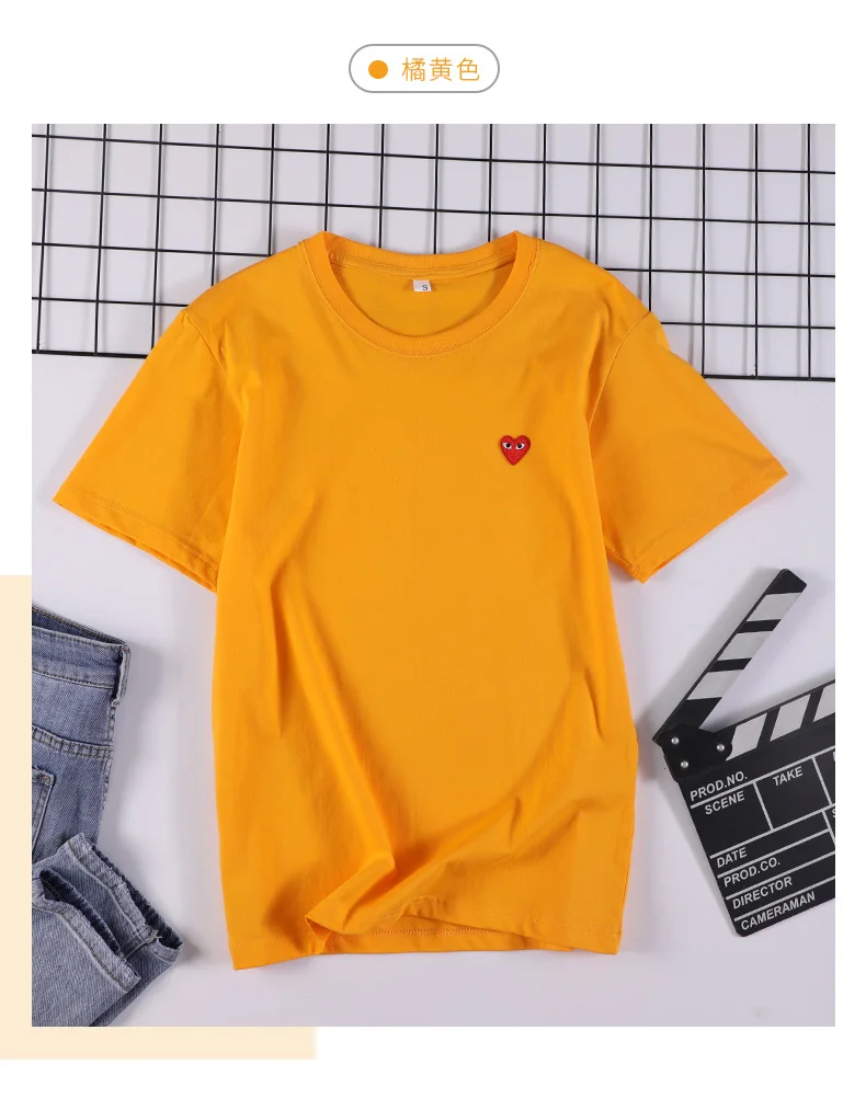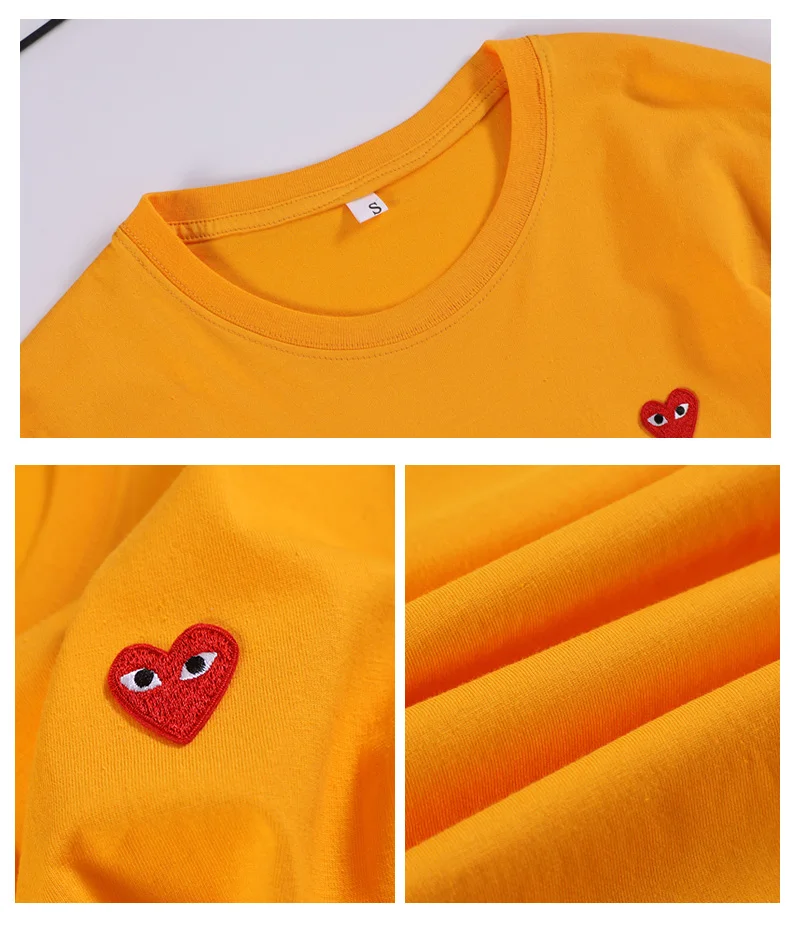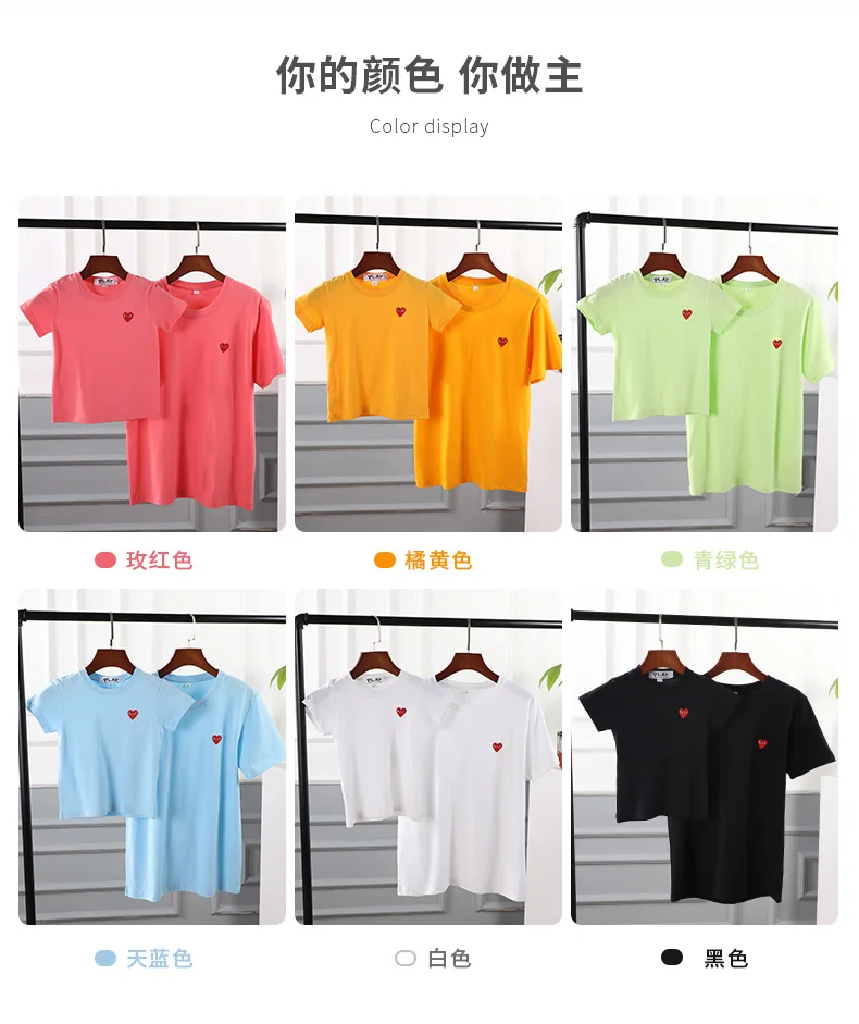 Fashion Couple pure cotton T-Shirt CDG Casual Embroidery Love-Heart Breathable T-shirt Casual Summer Outfits For Man Women