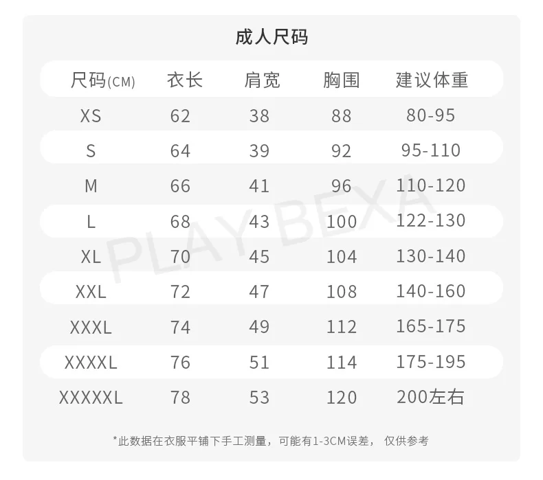 Because is manual measurement, there may be 1-2 cm error T-shirt size size XS : bust 88cm,length 62cm size S : bust 92cm,length 64cm size M : bust 96cm,length 66cm size L: bust100cm,length 68cm size XL : bust 104cm,length 70cm size XXL : bust 108cm,length 72cm size XXXL : bust…