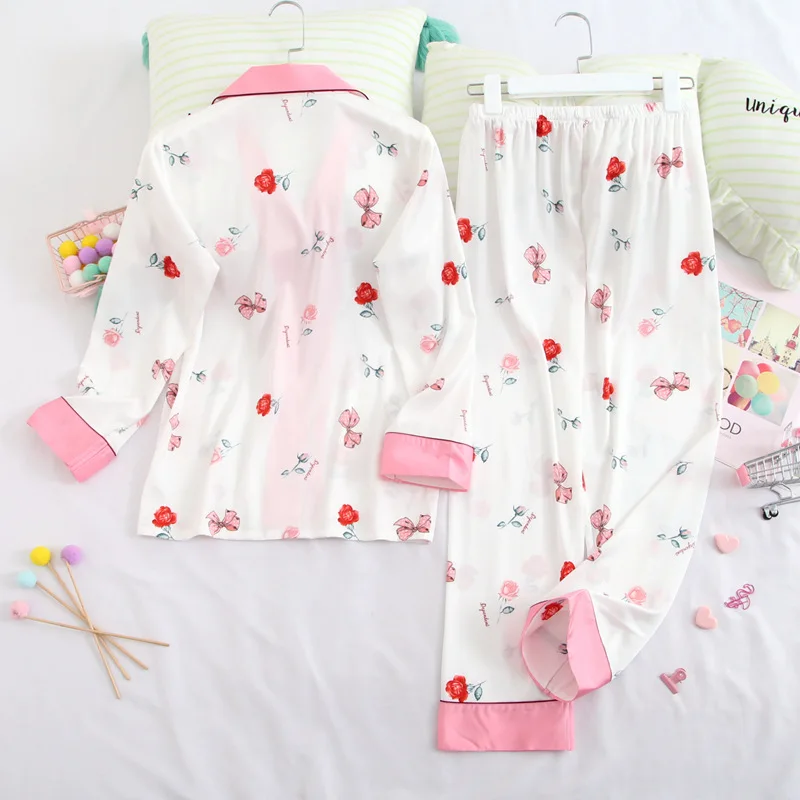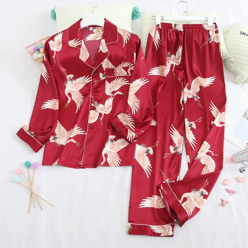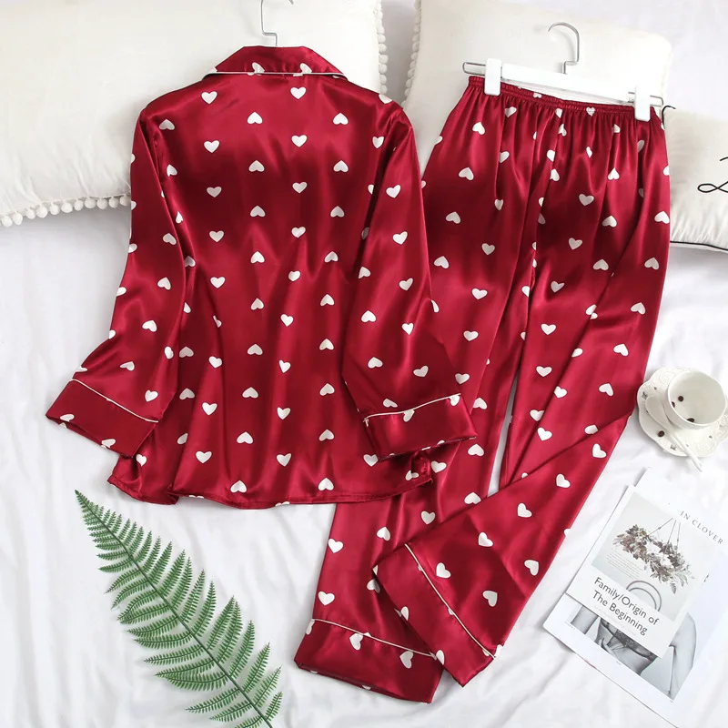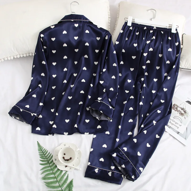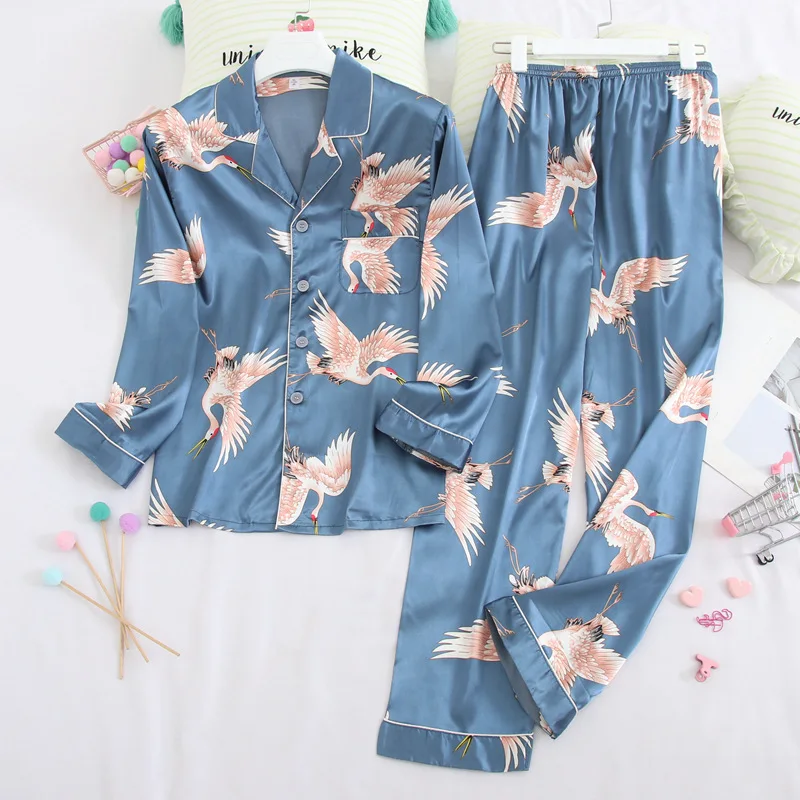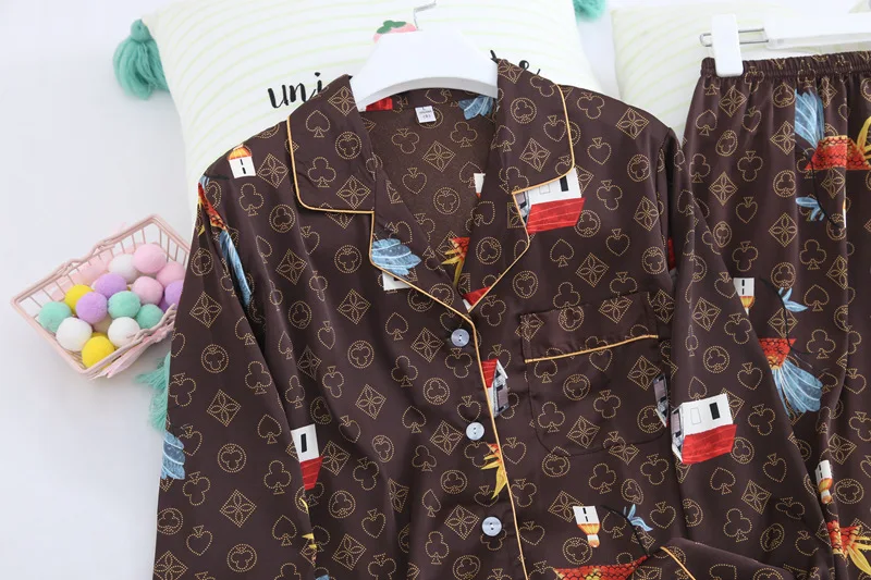 Fiklyc underwear spring / autumn long sleeve & pants women’s turn-down satin pajamas sets pizama damska night suits huispak HOT