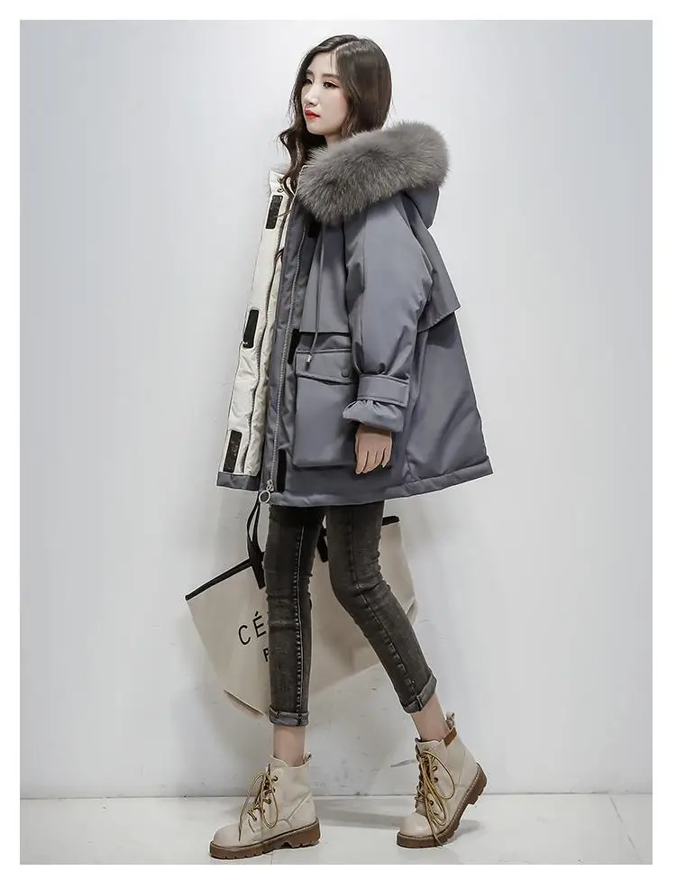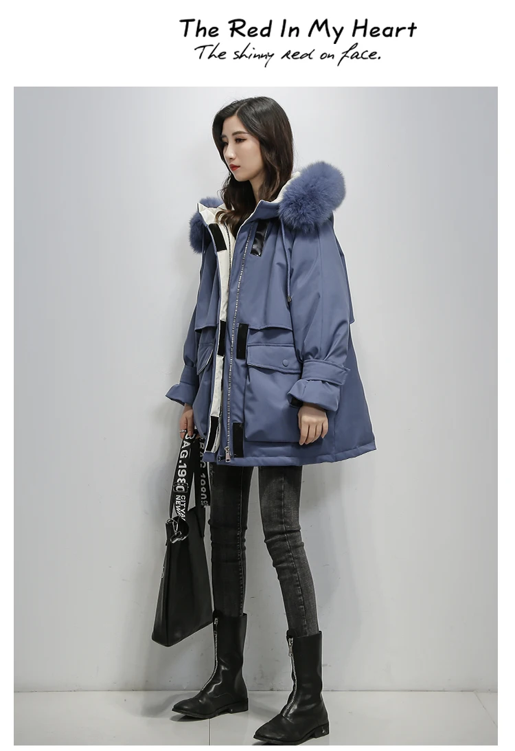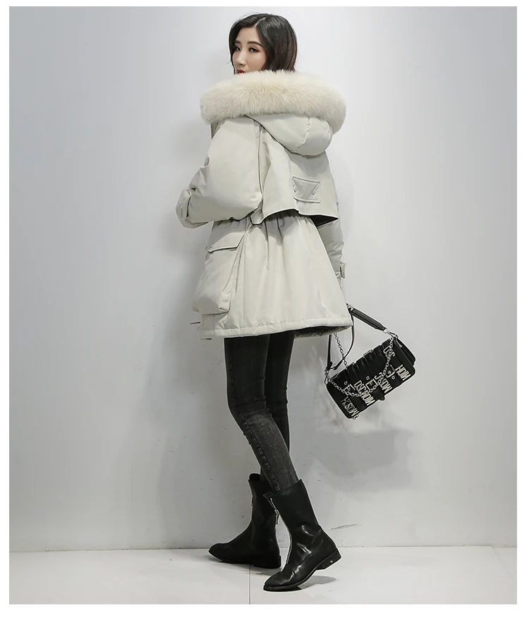 Fitaylor Large Natural Fox Fur Hooded Winter Jacket Women 90% White Duck Down Thick Parkas Warm Sash Tie Up Snow Coat