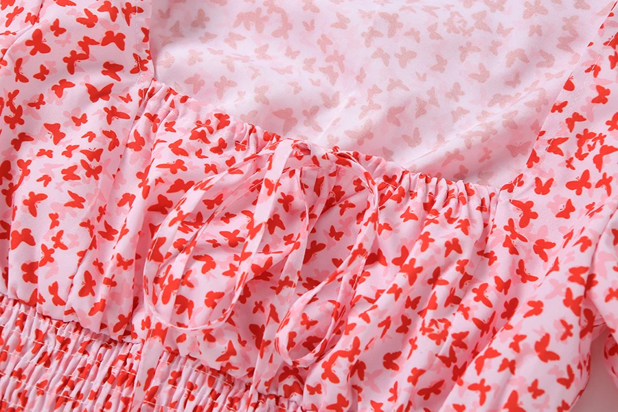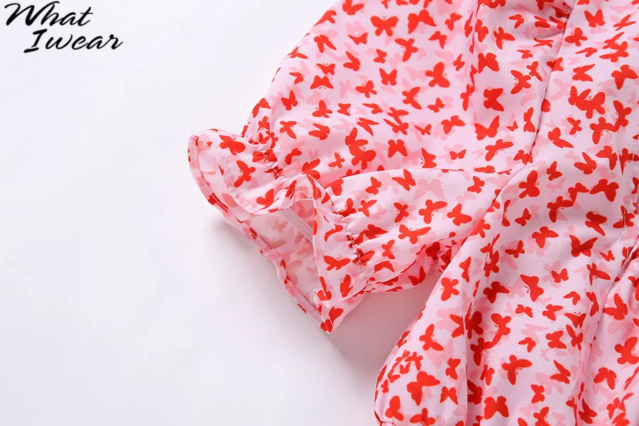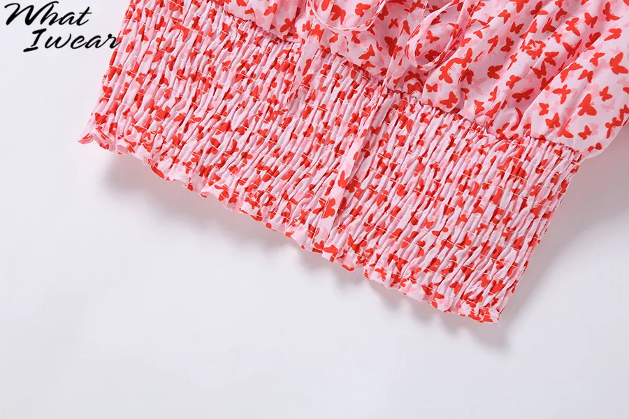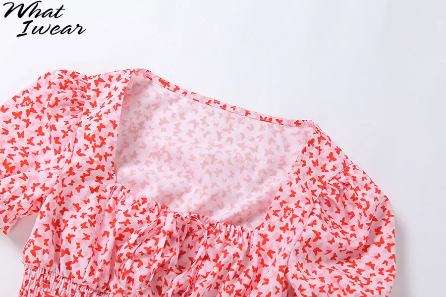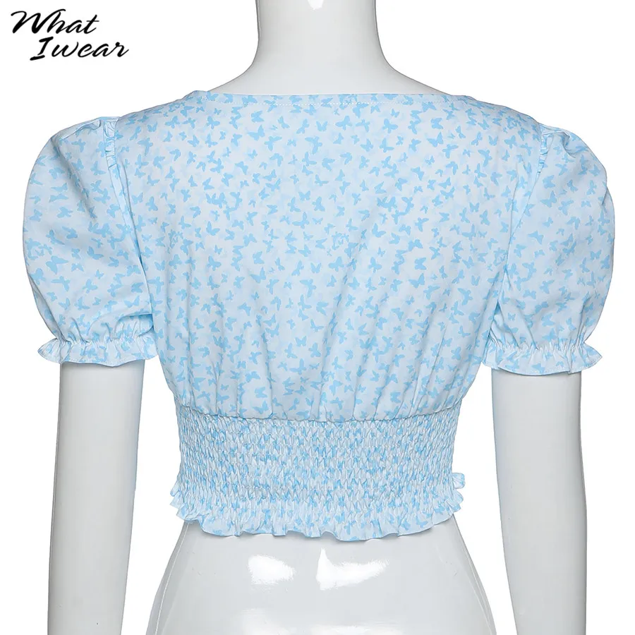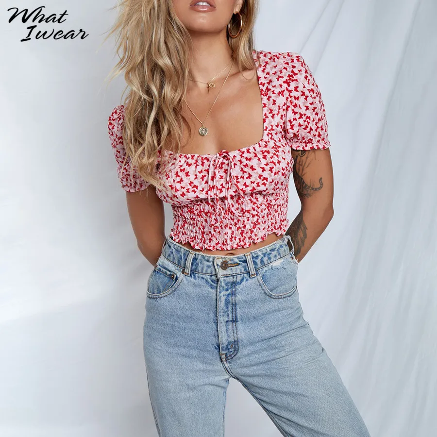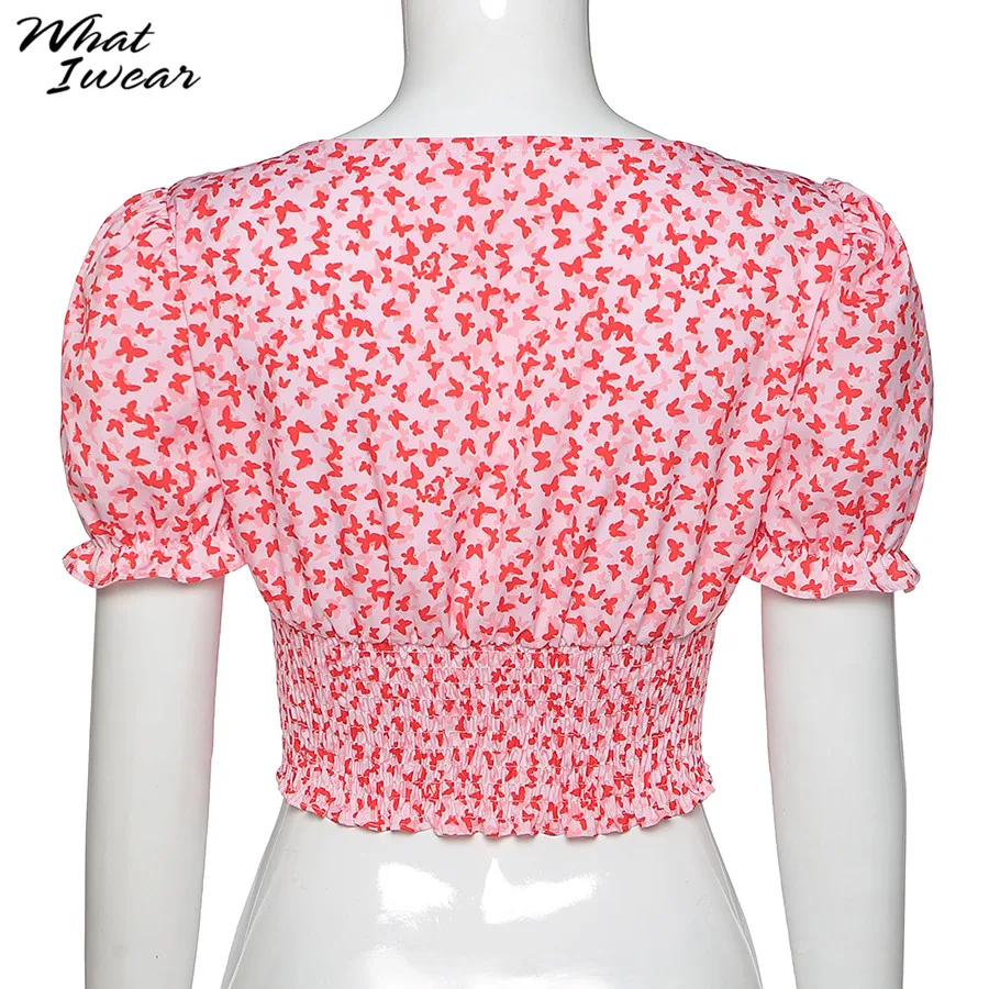 Floral Print shirt elegant t-shirt women puff sleeve Square Collar tshirt Tie Up crop top Summer Shirts Casual Tees Harajuku