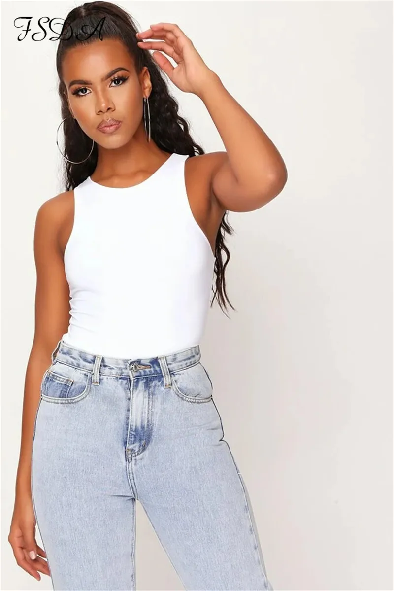 FSDA 2020 Sleeveless Summer Sexy Bodysuit Women Off Shoulder White Basic Body Top Casual Streetwear Bodysuits Black