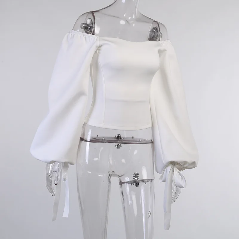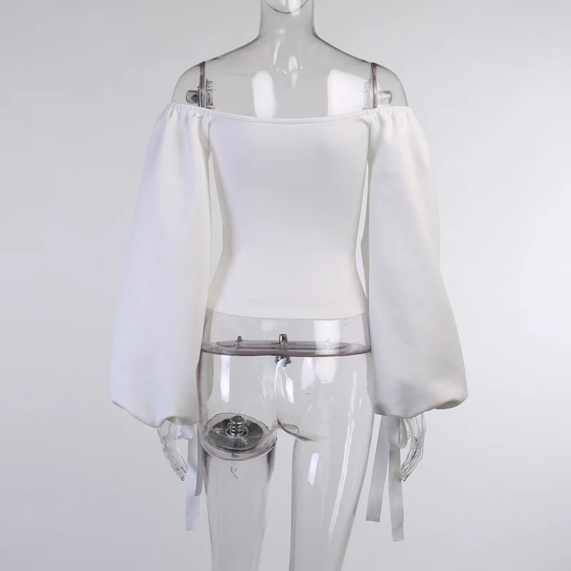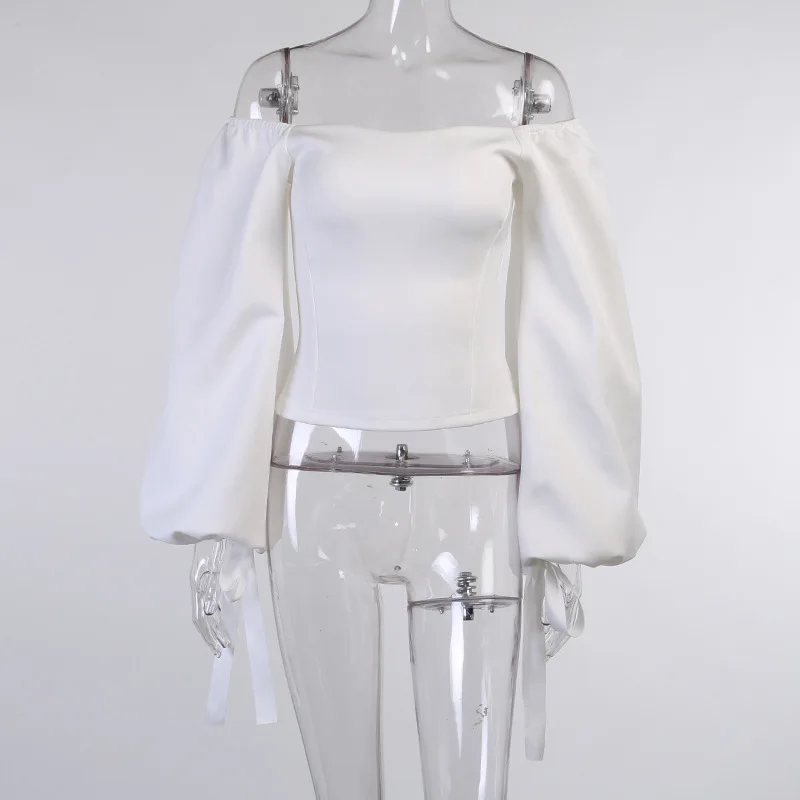 FSDA Off Shoulder Long Puff Sleeve Blouse Shirt Women White Elegant Autumn Sexy Office Lady Casual Top Shirts