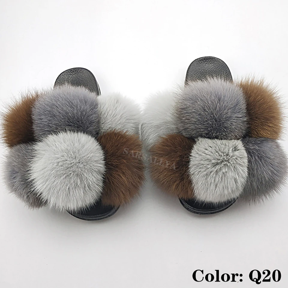 Summer Sliders Shoes Woman Real Fur Slippers Outdoor Women Luxury Ladies Furry Slippers Flat Footwear New Arrival 2020 Free Dropshipping